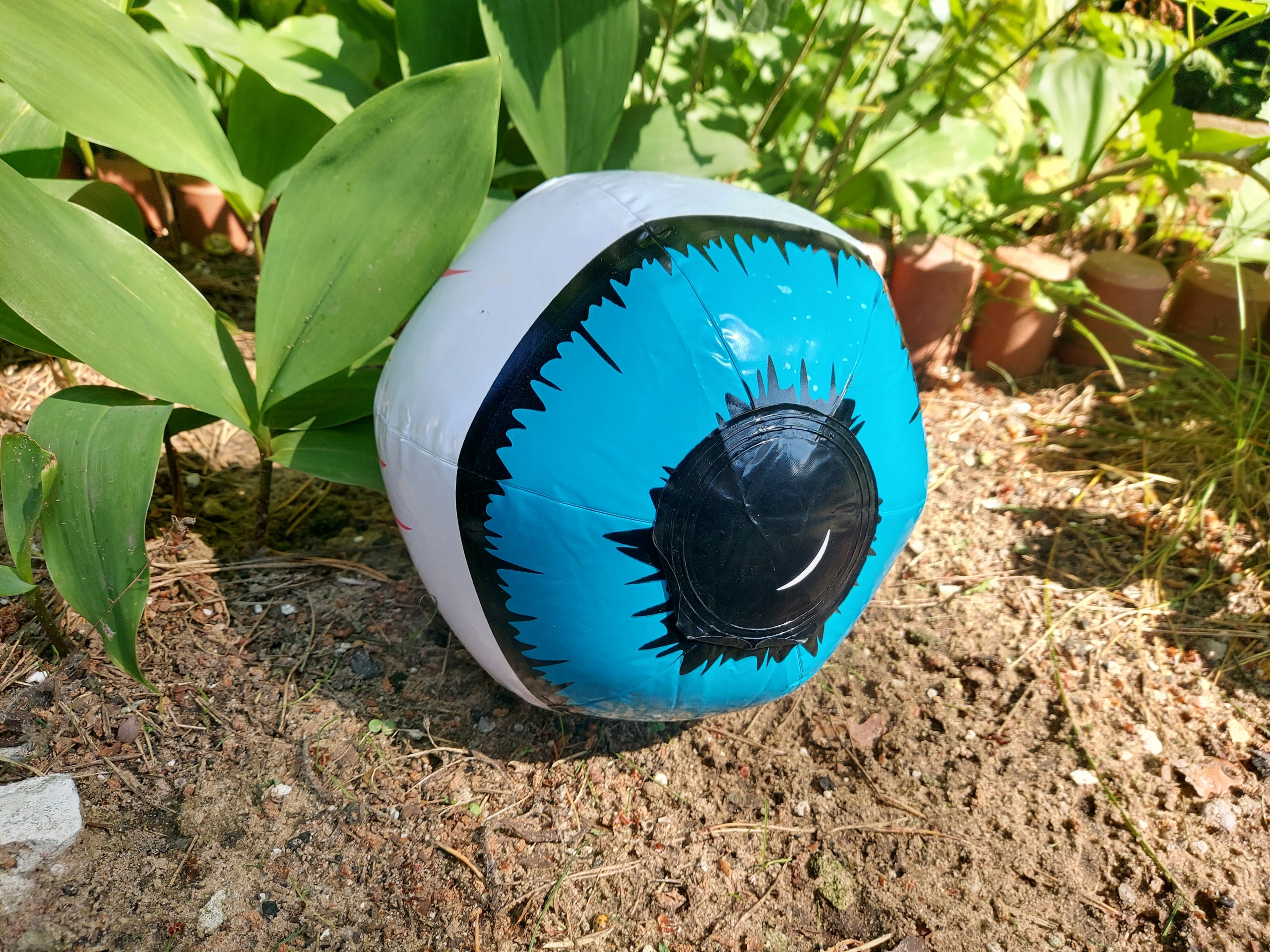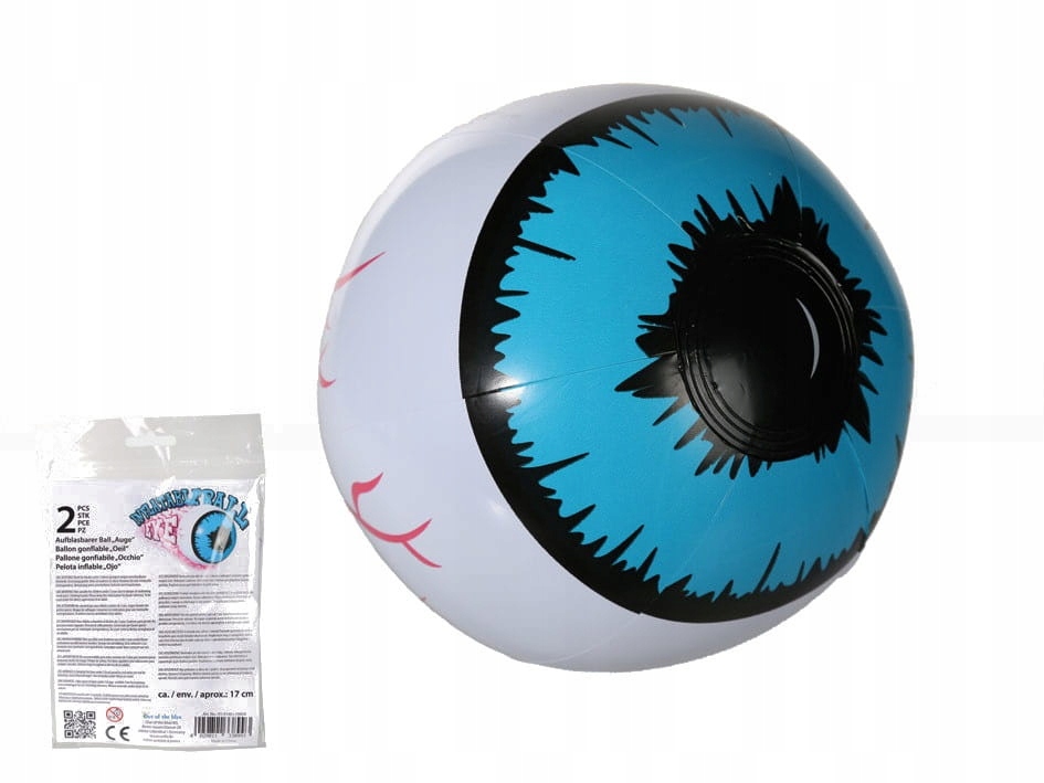 надувний м'яч ідеально підходить для гри у воді або на пляжі. Після завищення м'яч діаметром близько 17 см. Граючи, це справляє велике враження, коли до вас приходить велике око. Комплект включає 2 кульки.