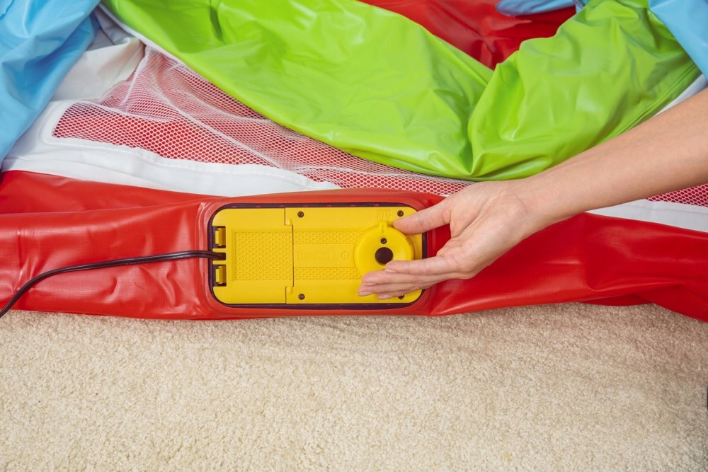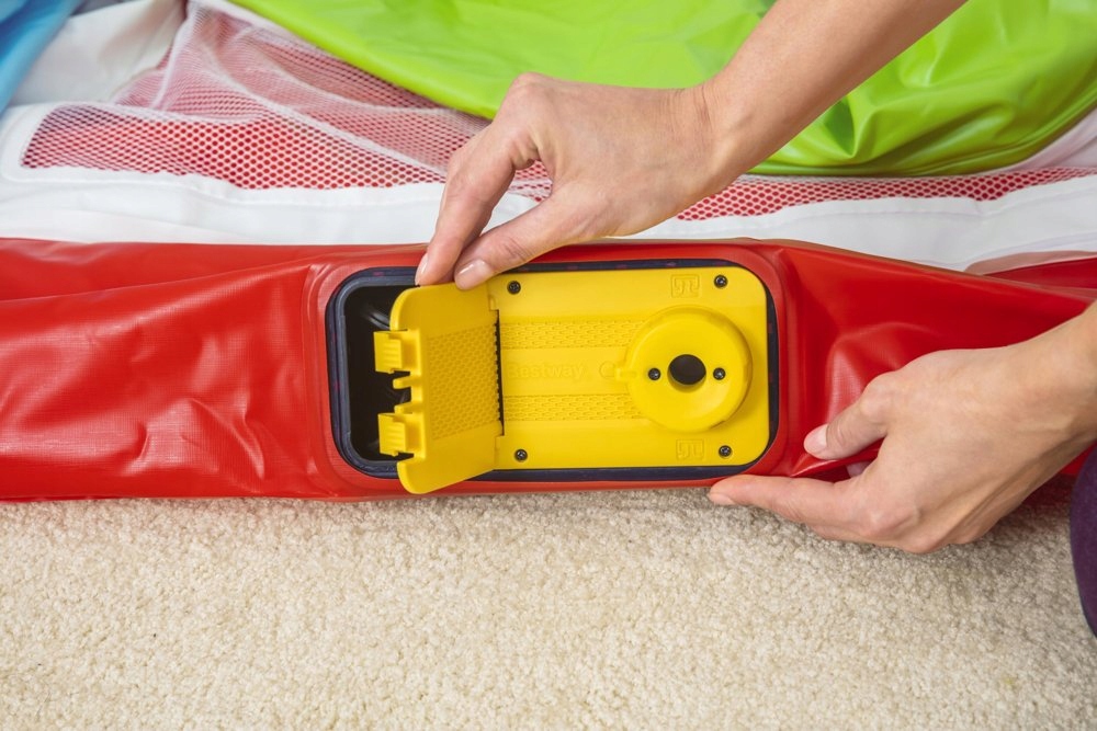 Надувний батут — ідеальна розвага для найменших. Завдяки товстій надувній основі та надувним сітчастим бокам, які повністю оточують манеж, ваші діти можуть стрибати та грати в безпечному середовищі. Цікаві кольори неодмінно привернуть увагу кожної дитини. Міцна конструкція дозволяє йому витримувати підстрибування, стрибки, перекочування та падіння. Маленький отвір у центральній частині надувного качана полегшує захід і вихід дітей. Окрім чудового задоволення, діти зможуть розвинути моторику, координацію рук та очей та спритність.