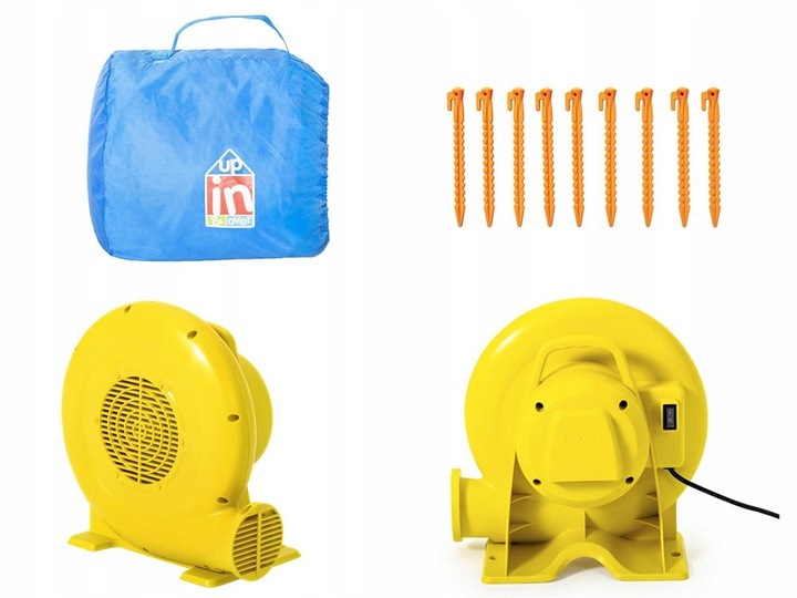 2. вентилятор , що дозволить вам швидко заповнити батут повітрям; Під час використання вентилятор повинен весь час працювати - квадрат залишається завищеним завдяки постійному потоку повітря.