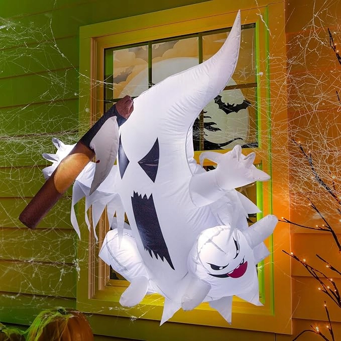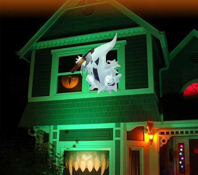 Страшне тріо привидів, що запускаються з вікна - Страх Хеллоуїна перемістилося до вашого саду завдяки вражаючій, освітленій надувній фігурі.
