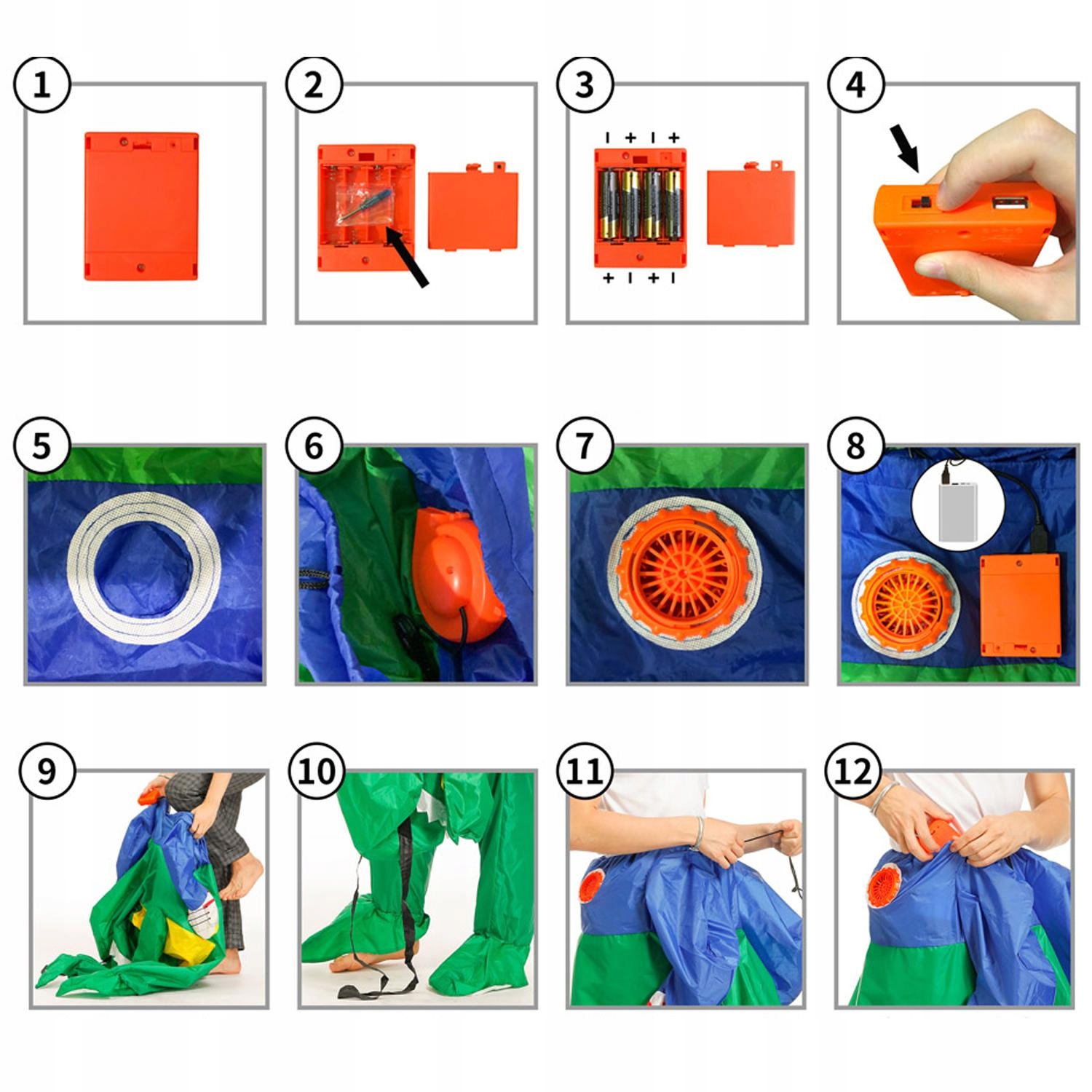 - 🦖 Повністю накачується за 90 секунд. Вентилятор, що працює зі швидкістю 9000 об/хвзабезпечує одяг завжди надутим (тримайте акумулятор на поясі, ніколи не носіть його в кишені, інакше пристрій перегріється і обпече ваші ноги). b>