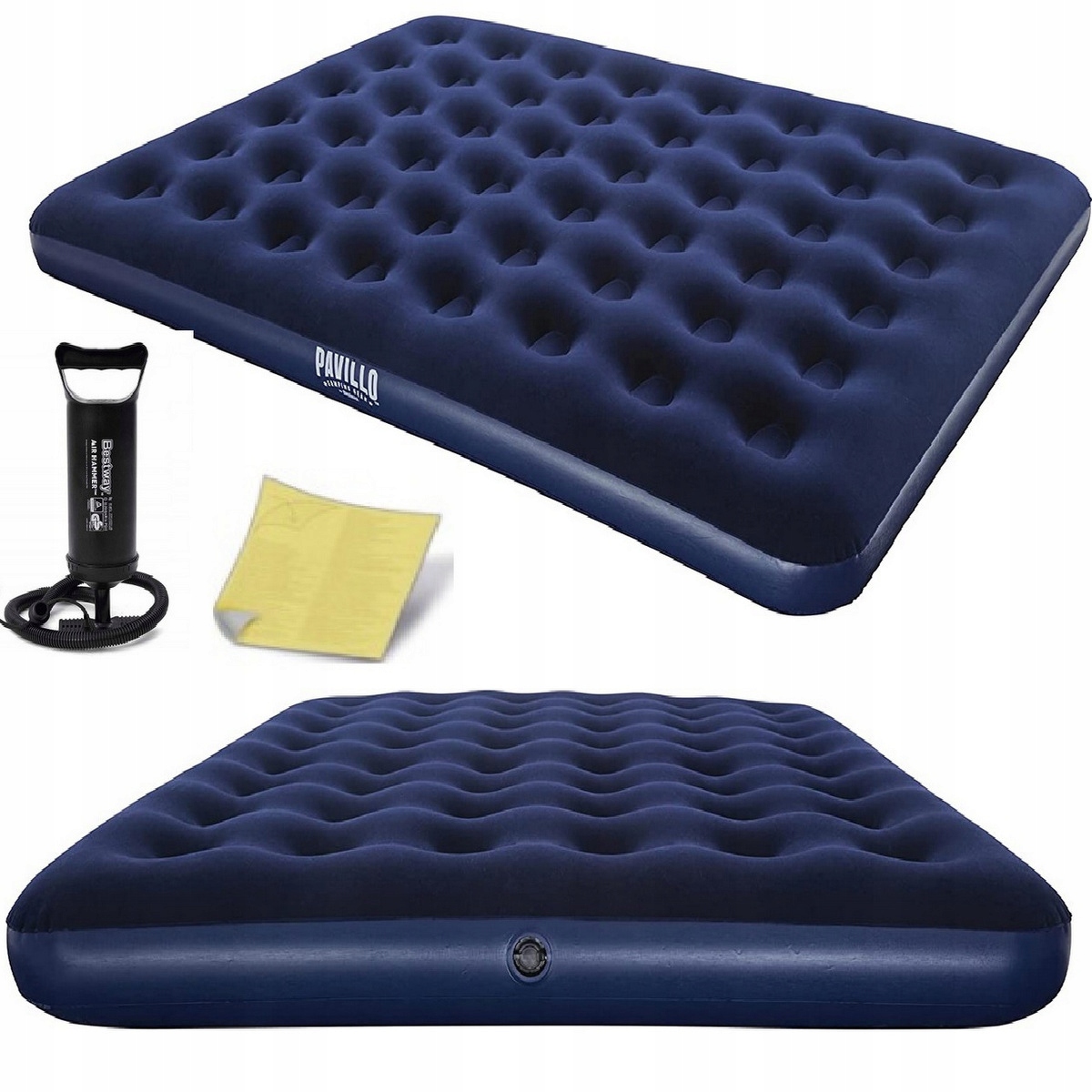 - У набір входить: матрац, ремонтна латка, ручний насос, поршневий насос 30 см .