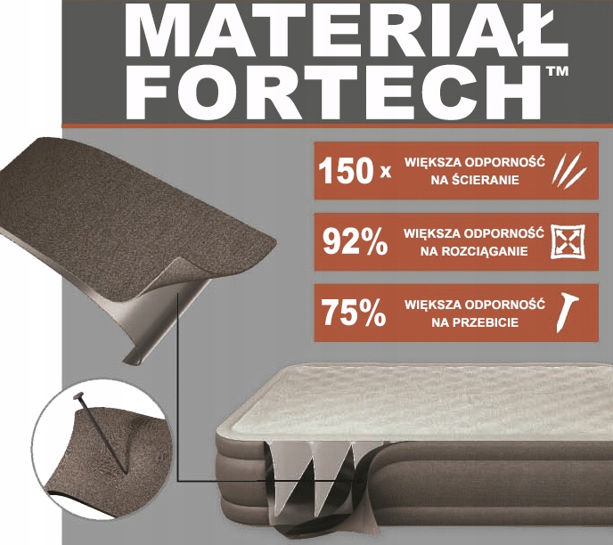 Верхня частина матраца покрита матеріалом Fortech, який гарантує дуже високу міцність, довговічність і комфорт. Матеріал ULTRA FRESH має антибактеріальну дію та захищає від розвитку бактерій, які викликають неприємні запахи або цвіль на спальній поверхні.