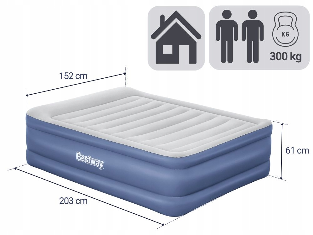 Оплачивая «Надувной матрас для 2 человек. 203 х 152 х 61 см с электронасосом. БЕСТВЕЙ 67690», вы можете быть уверены, что данное изделие из каталога «Матрасы» будет доставлено из Польши и проверено на целостность. В цене товара, указанной на сайте, учтена доставка из Польши. Внимание!!! Товары для Евросоюза, согласно законодательству стран Евросоюза, могут отличаться упаковкой или наполнением.