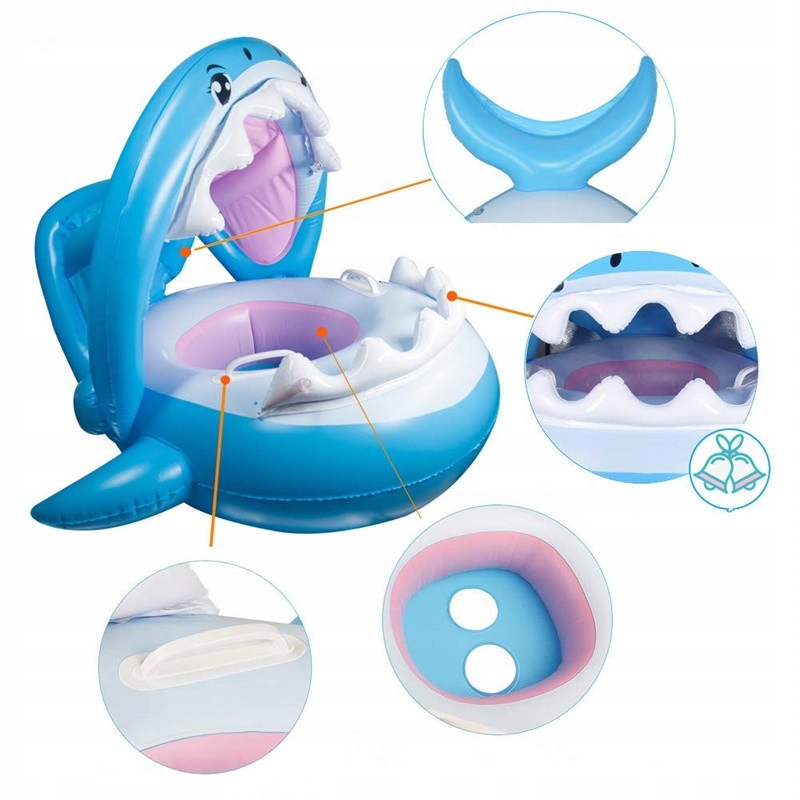 - Дитячий плавальний поплавок має милий дизайн у формі рибки SHARK