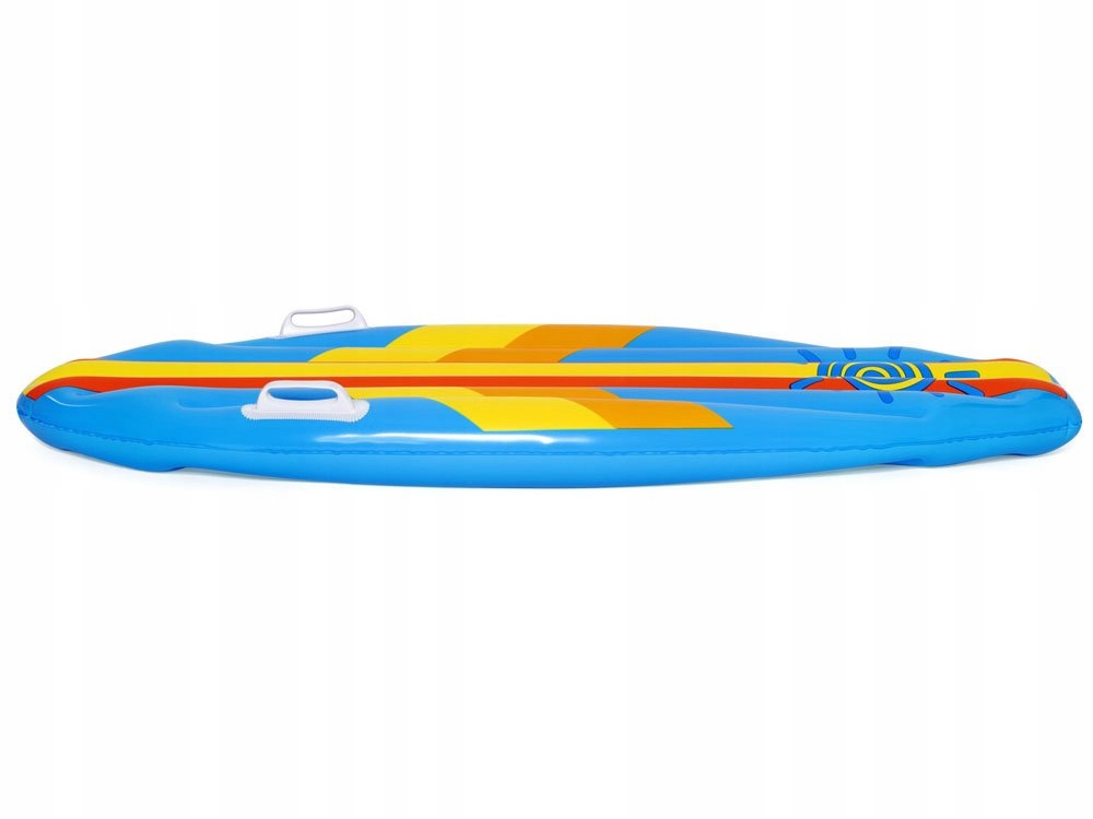 - надувна дошка для серфінгу синього кольору - ідеальний супутник для вашого малюка під час літнього відпочинку водою. Завдяки суцільній конструкції, заснованій на поздовжніх перегородках, рада забезпечує стабільність та безпеку під час розваг. Оснащений двома зручними ручками, полегшує транспорт та баланс на воді. Продукт виготовлений з довговічної ПВХ товщиною 0,22 мм, забезпечуючи довготермінову корисність. Дошка має розміри 114 х 46 см і максимальне навантаження до 60 кг, що робить його придатним для дітей віком від 3 до 10 років. Набір також включає практичний патч з ремонту. Завдяки цій надувній дошці, ваша дитина буде насолоджуватися радістю плавання в басейні чи у відпустці біля моря. Забезпечте свого малюка незабутні моменти у воді!