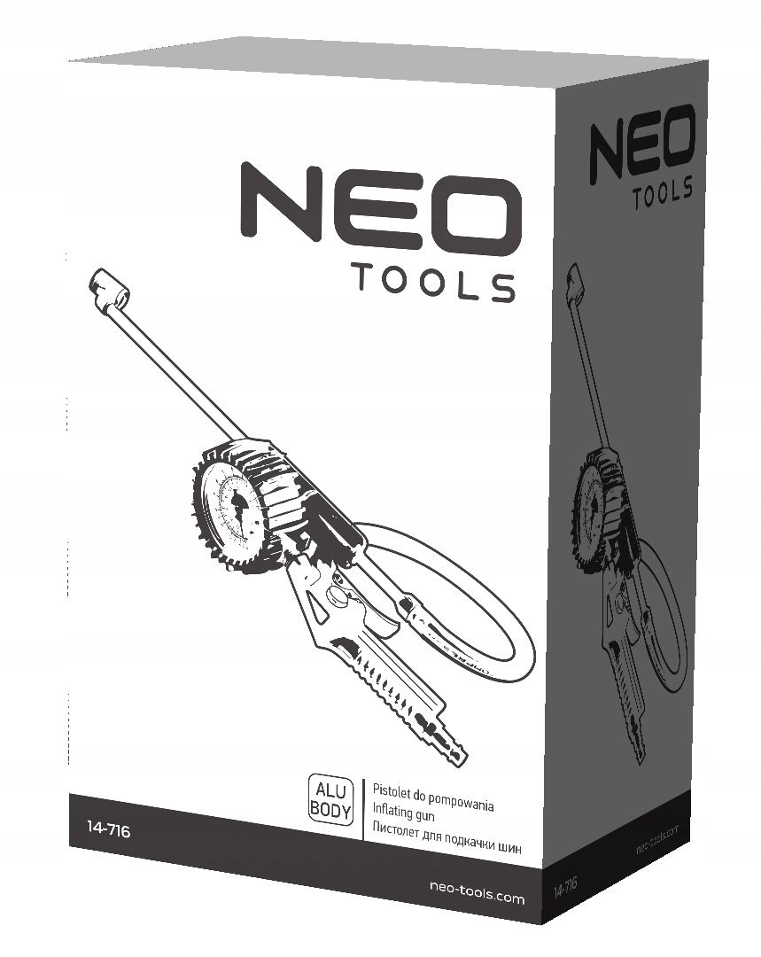 Надувний пістолет з манометром NEO TOOLS виготовлений з алюмінію. Максимальний робочий тиск 12 БАР. Має практичний гачок для підвішування та шланг довжиною 300 мм. Він також оснащений жорстким подовжувачем з тримачем для глибоко вмонтованих клапанів, наприклад, у здвоєних колесах. Сертифікат CE підтверджує високу якість інструменту. Торгова марка NEO відповідає очікуванням професіоналів.