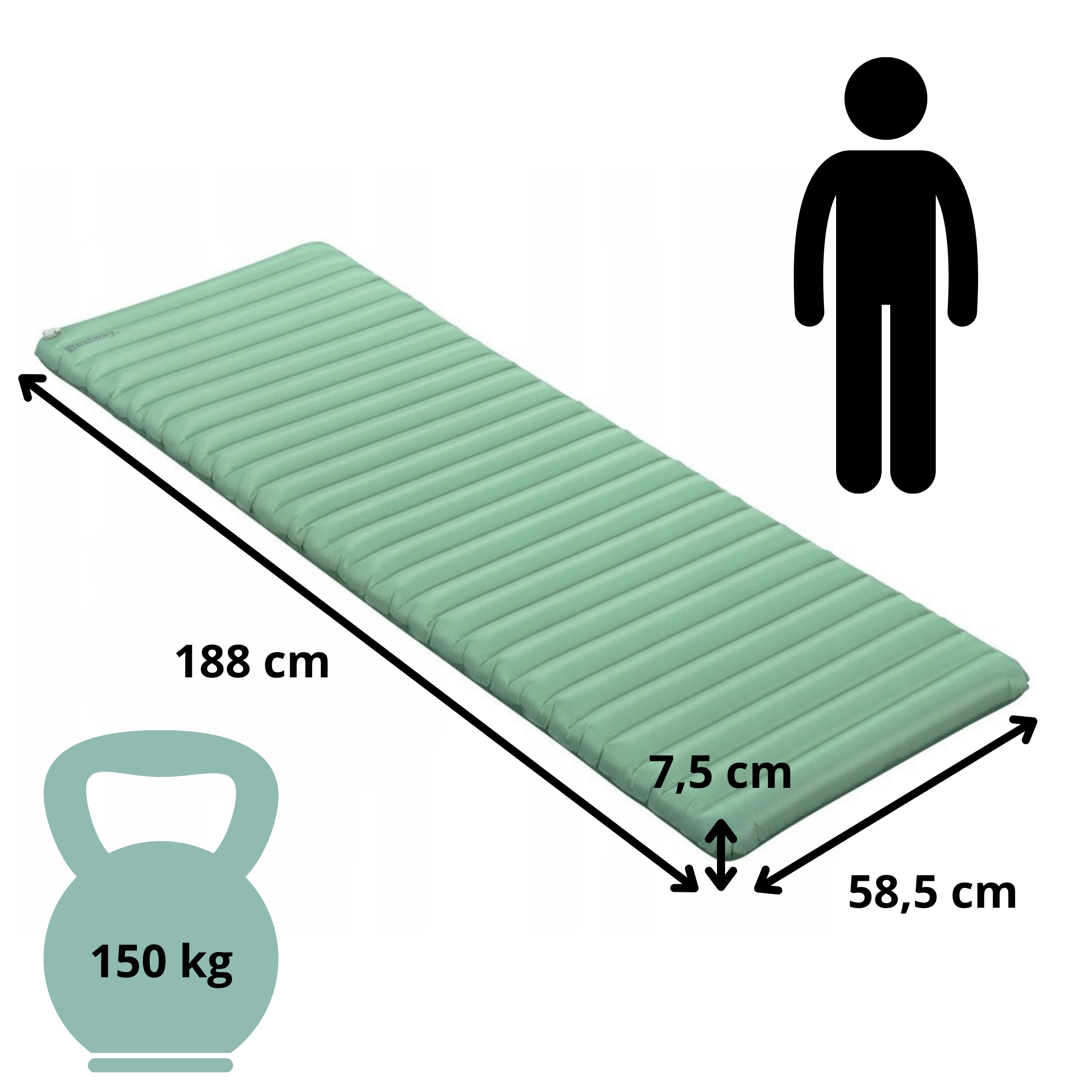 - Розміри: 188 x 58.5x 7.5 см підходять до великого спального мішка