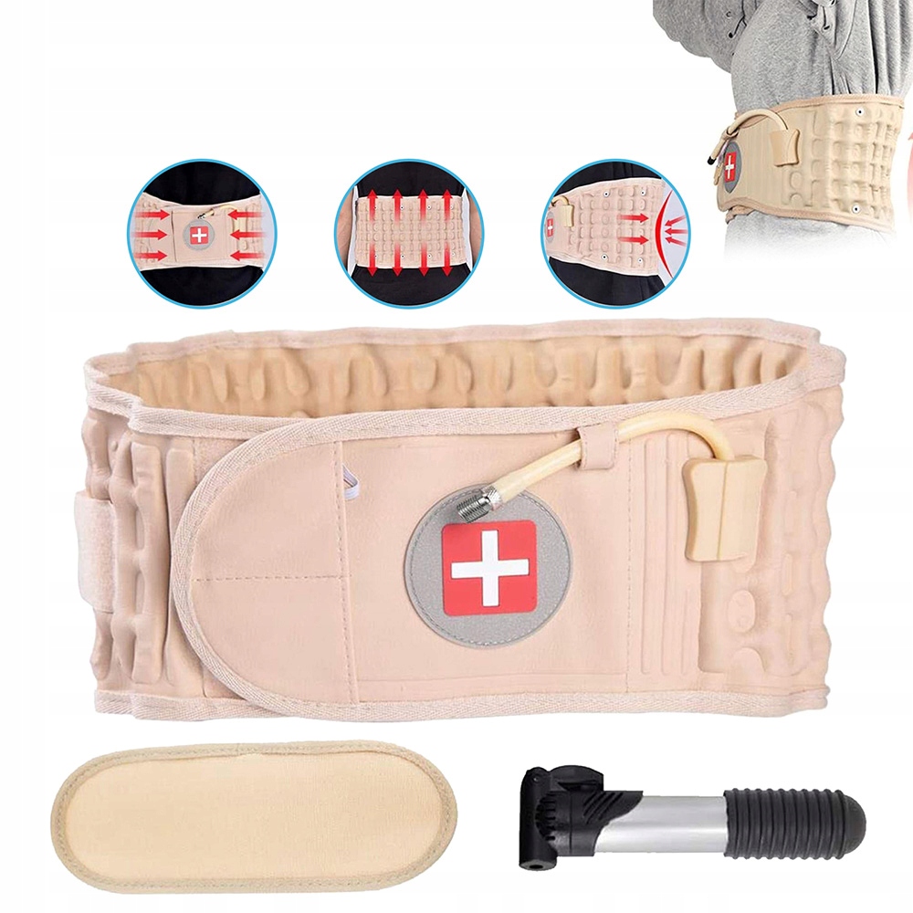 ремінь декомпресії на задній частині 30 великих повітряних колон, обгортаються близько 360 °. Після надування повітряної колони створює арочну тягу, яка підтримує рухи вгору і вниз, стабілізує талію і розтягує поперекову ділянку хребта. Це забезпечує негайне полегшення у випадку грижі, радикуліту, болю в спині, болю в м’язах та інших проблем із спиною.