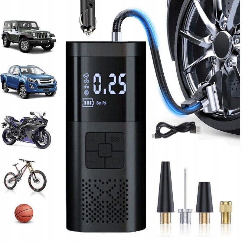 Електричний компресор шин невеликий за розміром, легкий, його легко переносити та не займає місця. Дуже підходить для зберігання в автомобілі, сумці або будь-де. на ходу, щоб допомогти вам у будь-який час і в будь-якому місці. Міні-накачувач шин оснащено різними насадками, які підходять для таких типів велосипедів, як гірські велосипеди, шосейні велосипеди або електровелосипеди. Його також використовують для мотоциклів, автомобілів, плавальних м’ячів або кілець та інших надувних пристроїв.