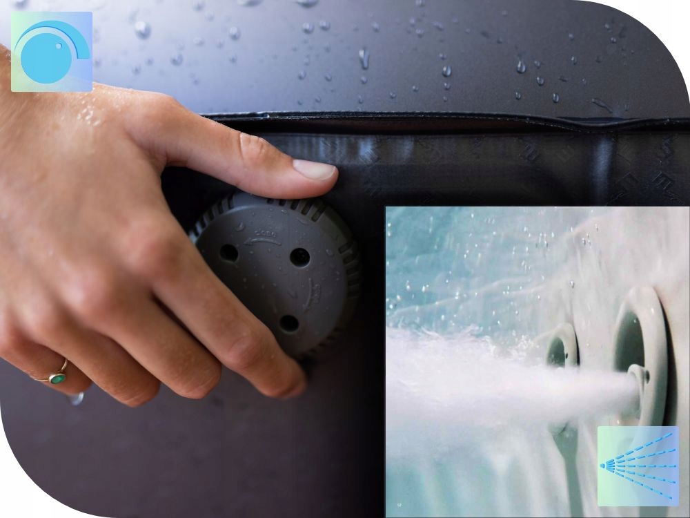 Для забезпечення надзвичайно інтенсивного досвіду система Air Jets генерує тисячі бульбашок, що плавають із спа -центру ДНК, оточуючи з усіх боків. Крім того, спа -центр оснащений функцією регулювання інтенсивності бульбашок, що дозволяє регулювати масаж на індивідуальні потреби.