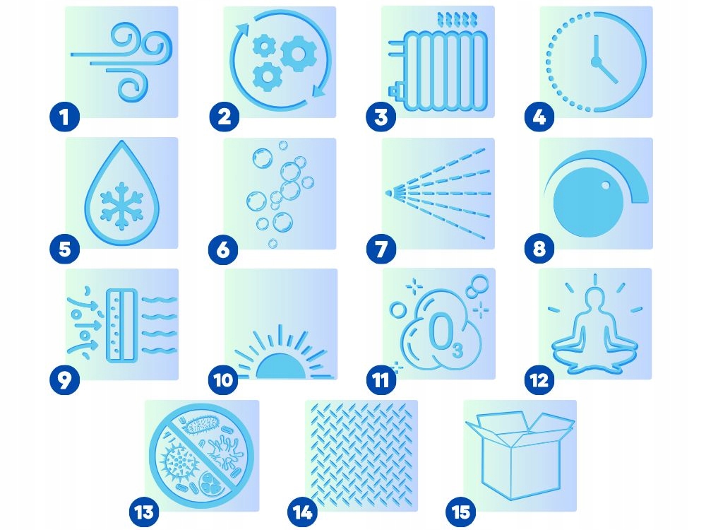 Чиста вода - ключ до ефективного гідромасажу. Антибактеріальна тканина, що використовується на внутрішній спа -оболонку, підвищує ефективність стерилізації. Завдяки цьому вивільняються бактерицидні речовини, які зменшують ріст бактерій на 99%.