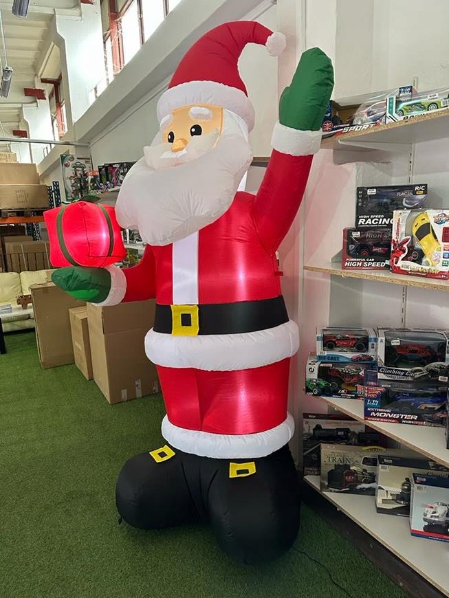 Продемонструйте свій різдвяний настрій із нашим вражаючим надувним Сантою заввишки 240 см! Унікальний у своєму роді, цей сяючий Санта-Клаус приверне увагу кожного перехожого та зробить ваш інтер’єр або сад сліпуче прикрашеним.