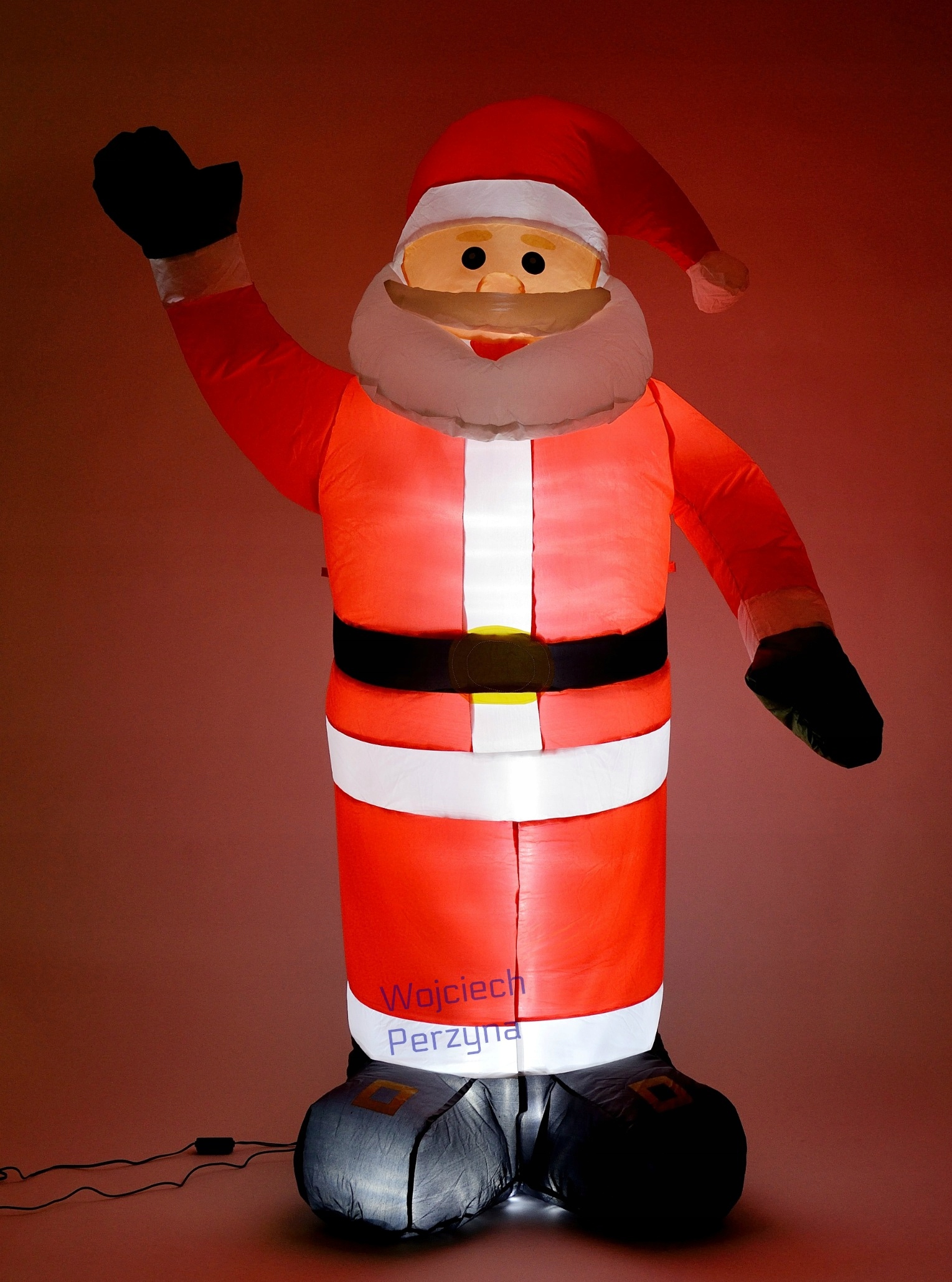 Кожен Санта-Клаус оснащений блоком живлення, який знижує напругу, що протікає в надувці, з небезпечних 230 вольт до абсолютно нешкідливих для нашого організму 12 вольт