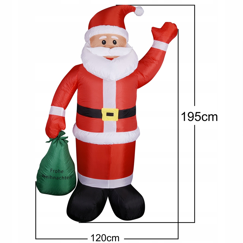 Санта, який підходить для використання як у приміщенні, так і на вулиці, надувається за допомогою електричного насоса, що входить у комплект.