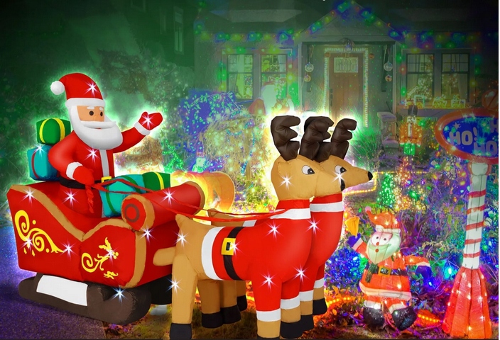 НАДУВНИЙ САНТА НА САНЯХ XXL 240 СМ НАДУВНИЙ САД САД ВІДКРИТИЙ