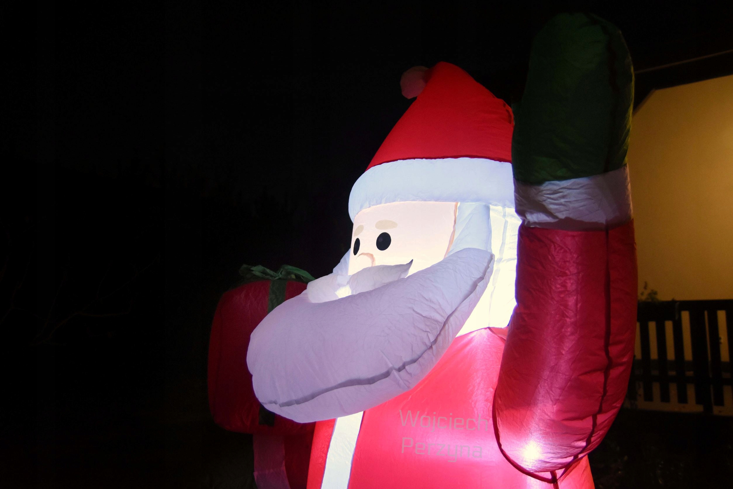Білі світлодіоди освітлюють Санта-Клауса від його ніг до капелюха, завдяки чому він виглядає приголомшливо після настання темряви