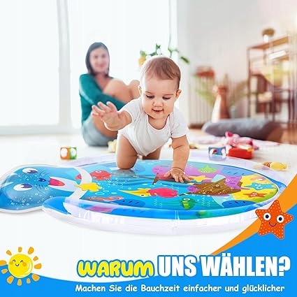 - Здоровий розвиток через веселу гру: це не лише килимок для ігор у воді, але й сенсорна іграшка. Коли діти дивляться на килимок і торкаються його, у них добре тренується координація рук і очей, а м’язи спини зміцнюються. Крім того, це хороший помічник при невеликих проблемах з плоскою головою і здуттям живота.