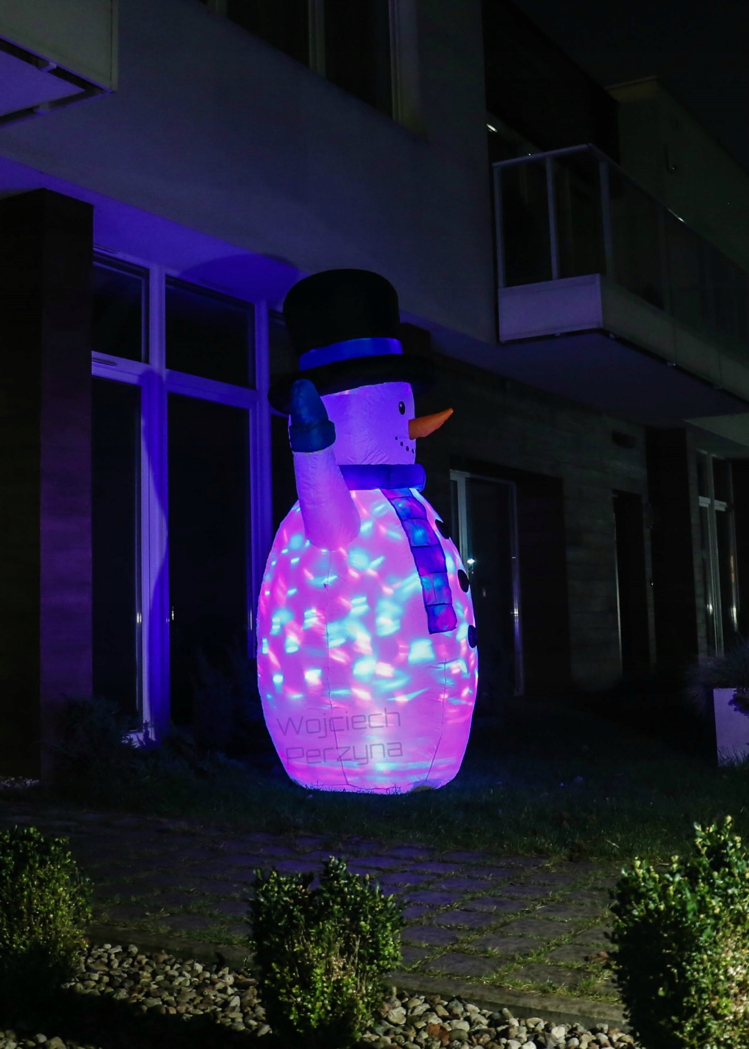 СНІГОВИК ПІДСВІЧУЄТЬСЯ СПЕЦІАЛЬНИМ ОБРАТНИМ ПРОЕКТОРОМ