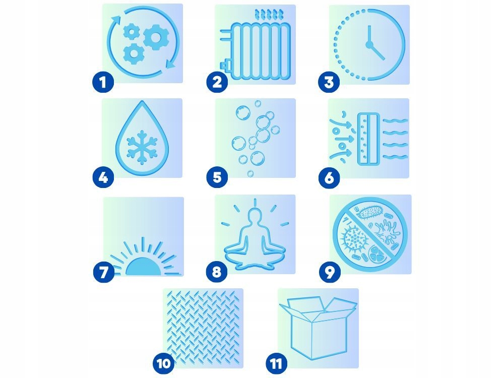 Захисна система проти замерзання захищає як спа -центр, так і контрольну коробку від низьких температур, автоматично нагріваючи воду до 3 ° С, коли його температура опускається нижче 1 ° С. Цей розчин є додатковим захистом, який захищає спа -центр від пошкоджень у разі випадкового, що залишає його в холоді.