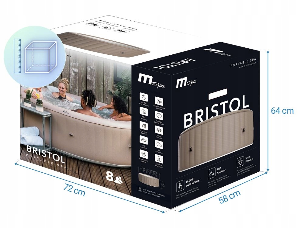Малювання з піщаних пляжів та теплих заходів сонця, спа Брістоль характеризується прекрасним кольором moczki. нейтральний колір легко поєднується з будь -яким інтер’єром. Має 144 повітряні форсунки , що зробить використання спа -центру справжнім задоволенням.