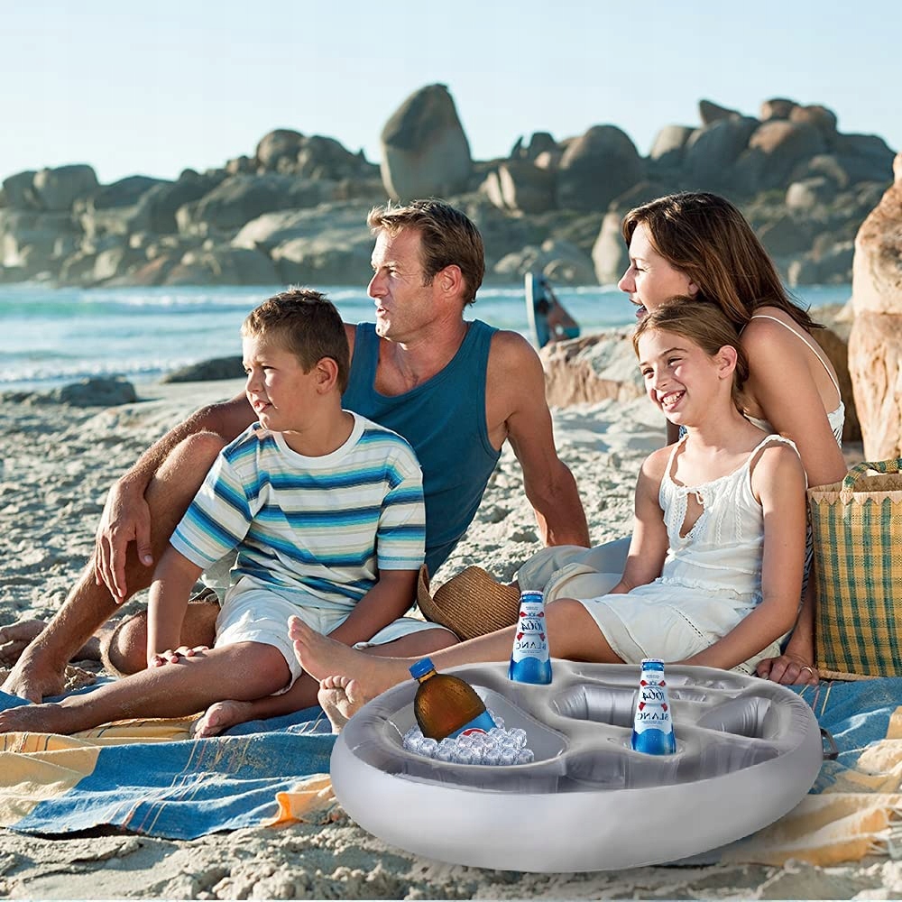 кілька вбудованих каналів та полиць для пляшок, місця для їжі та сункса.🍹 Легко надути плаваючого власника пива: негайно запустіть вечірку, не маючи справу з завищуванням пити в басейні. Ці аксесуари для басейну можна легко надути.