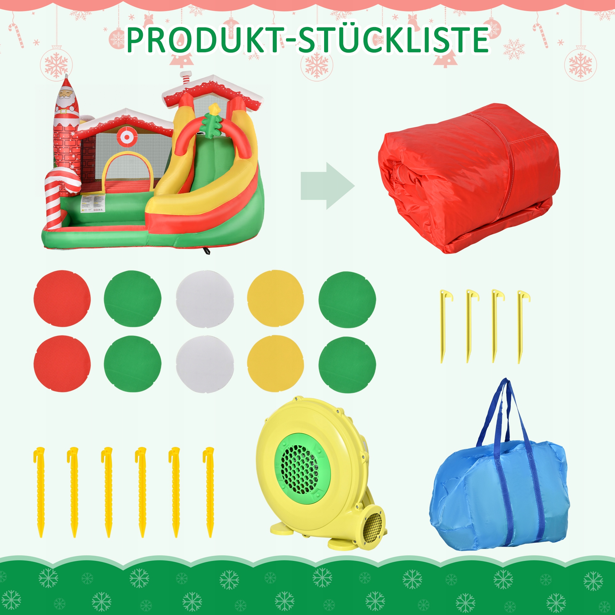 ✅ У набір входять кілочки для забивання надувного замку в землю та сумка для перенесення та зберігання замку коли він не використовується