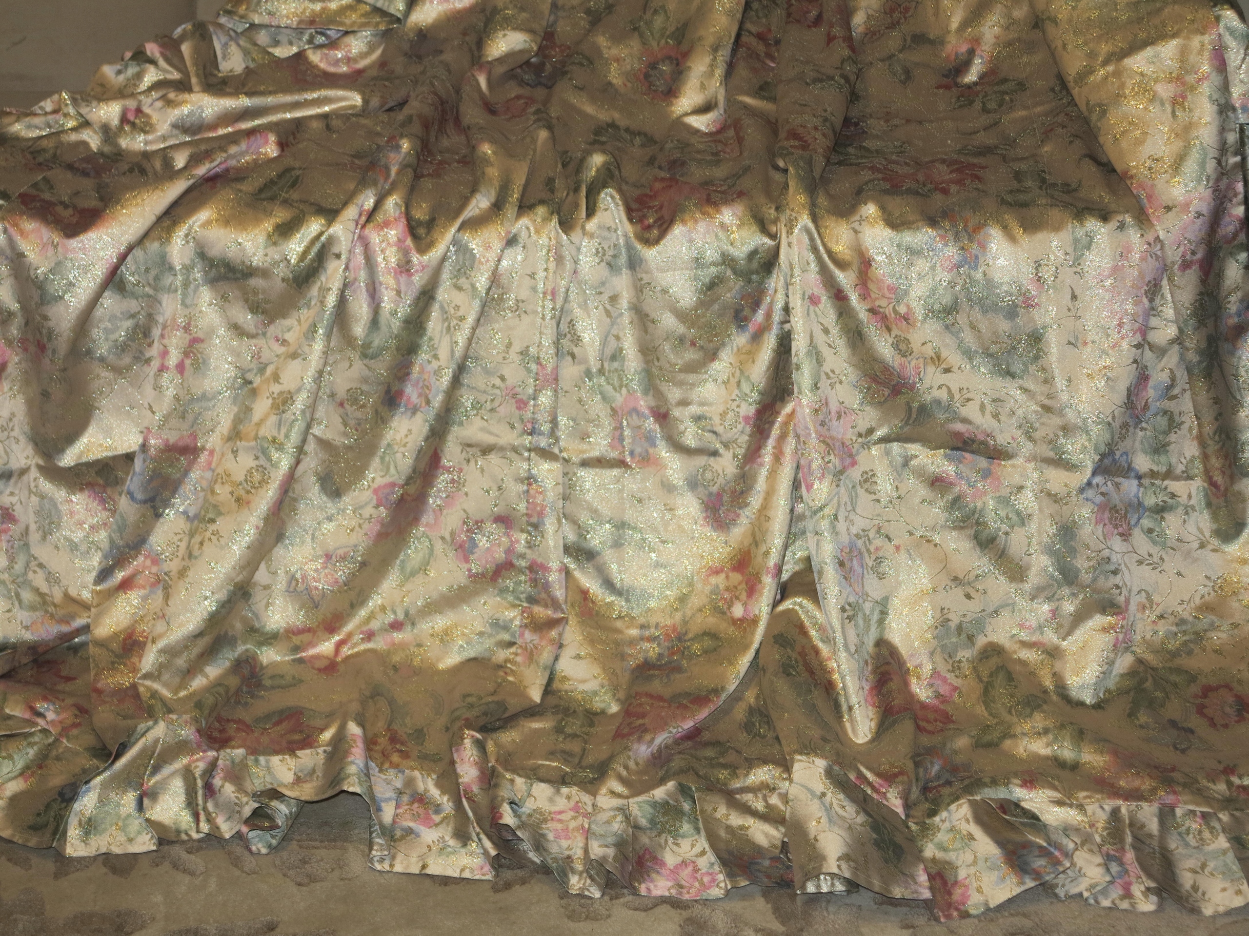 Предметом аукціону є надзвичайно красиве англійське покривало з воланами, що переливається багатою золотою ниткою. Покривало б/у, в дуже хорошому стані та якості.