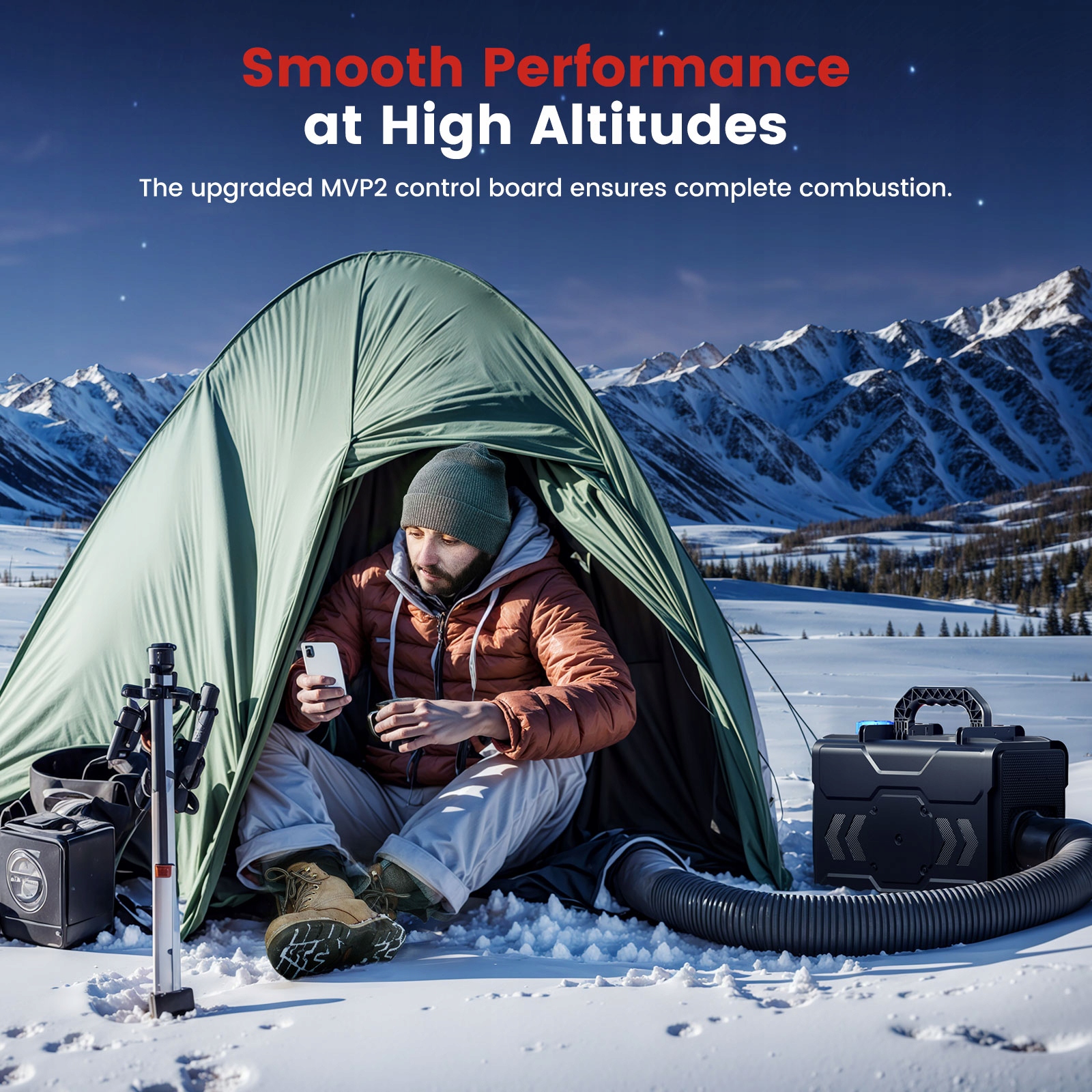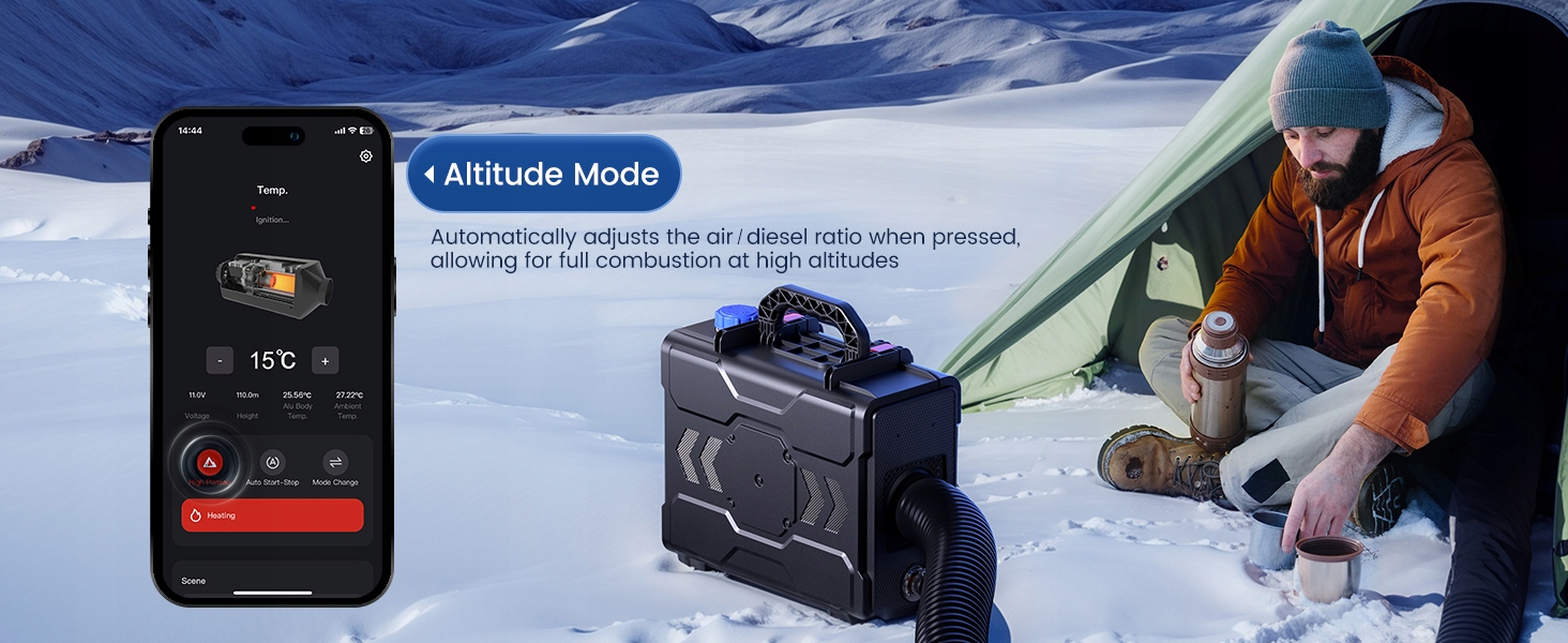 Інтелектуальне управління додатками: контрольте нагрівач віддалено за допомогою програми Bluetooth. Відрегулюйте температуру, встановіть таймери та використовуйте режим автоматичного плато, що забезпечує повне згоряння у високих горі на висотах до 6000 м.