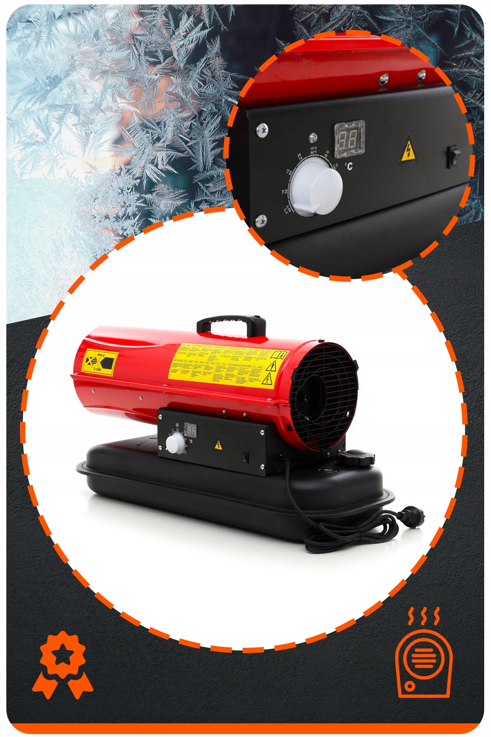 - з потужністю 30 kw живленням від дизельного. Нагрівач має контроль температури та цифровий дисплей, завдяки якому ви можете легко встановити передбачувану температуру навколишнього середовища.