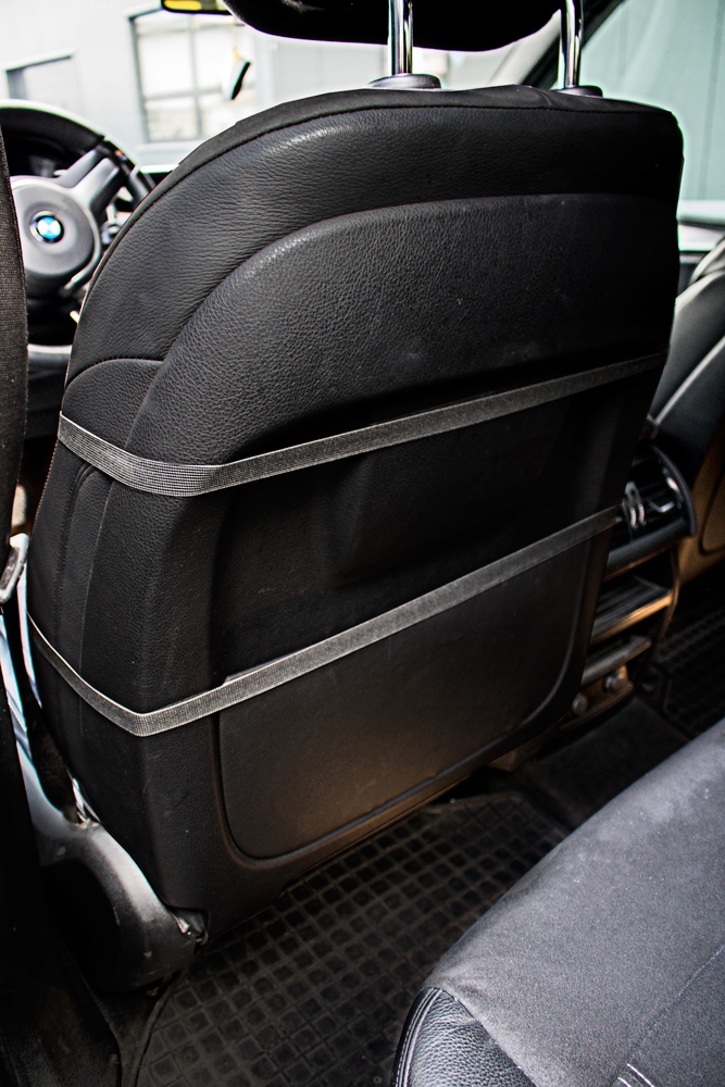 - Продумана система гачків і ремінців забезпечує хороше кріплення килимок до сидіння, завдяки чому килимок завжди залишатиметься на місці - не буде згортатися та рухатися.