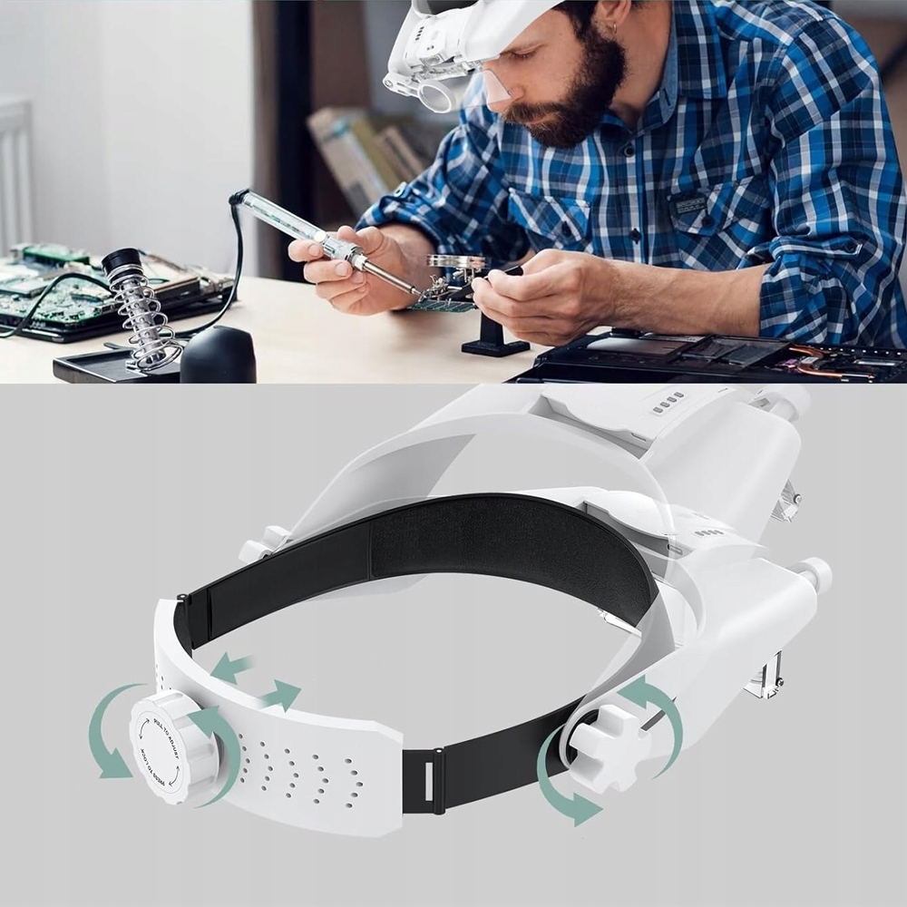 Регулювання наголів'я дозволяє ідеально прилягати до голови, а відсутність носових подушечок виключає тиск на ніс при тривалому використанні. Він стабільно утримує лупу, дозволяючи вам повністю зосередитися на роботі.