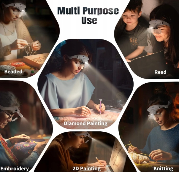 НАГОЛОВНЕ ЗБІЛЬШУВАЛЬНЕ СВІТЛО СВІТЛО 2 РЕЖИМИ ДЛЯ ЧИТАННЯ ШИТТЯ МАЛЮВАННЯ ПРАКТИЧНЕ