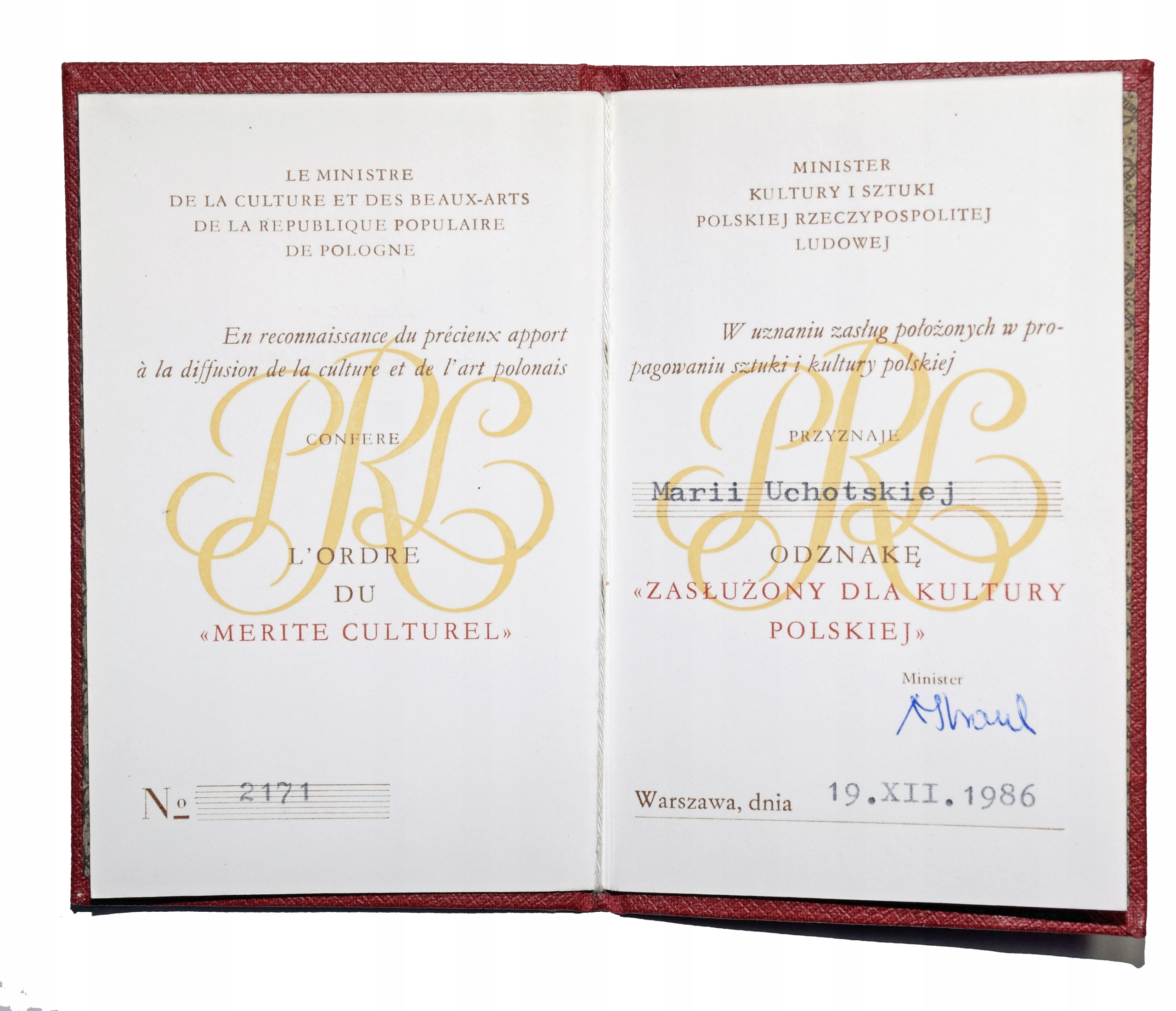 НАГРАДА ПНР / Заслуги польської культури 1986 р. / рідко