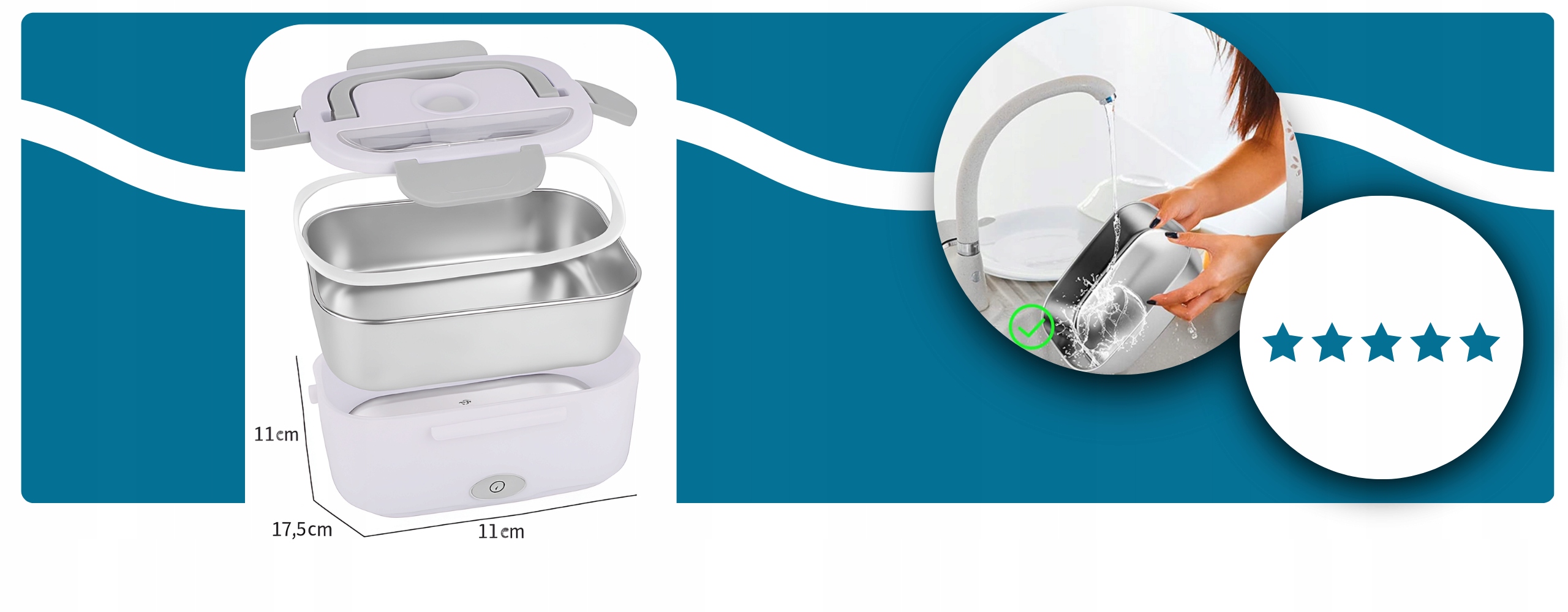 Електричний обігрівач дозволяє насолоджуватися теплою домашньою їжею де завгодно. Тверда конструкція і щільне закриття до знімків робить їжу тривалий час зберігати свіжість та аромат .