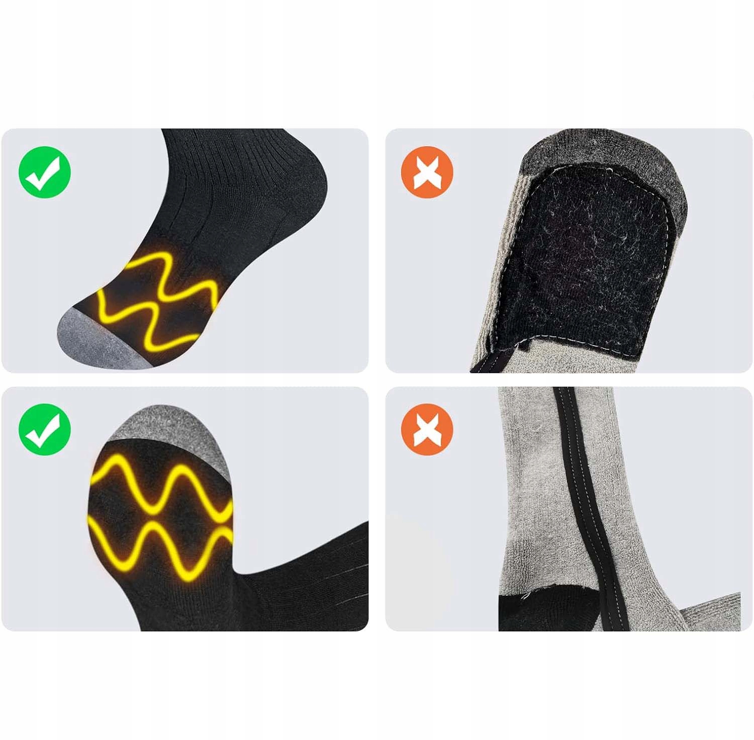 Наші нагріті шкарпетки мають велику гнучкість, універсальний розмір для обох статей, придатні для більшості людей. Чудовий зимовий подарунок для себе, родини та друзів. Ви можете мити в пральній машині, покласти нагріті шкарпетки в прикріплену мішок для білизни перед промиванням, щоб запобігти порушенню зарядного кабелю.