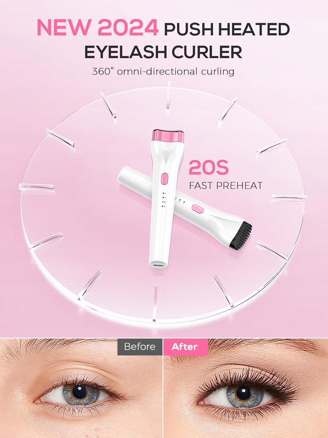 - Попрощайтеся з занедбаними кутами вій. Новий бігуді для вій з підігрівом для вій, 5D-завивки для керлінгу вже не обмежені формою ока. ES-01 має спеціальну вигнуту конструкцію, яка гарантує, що кожен окремий вії прекрасно зігнутий і не залишає вії.