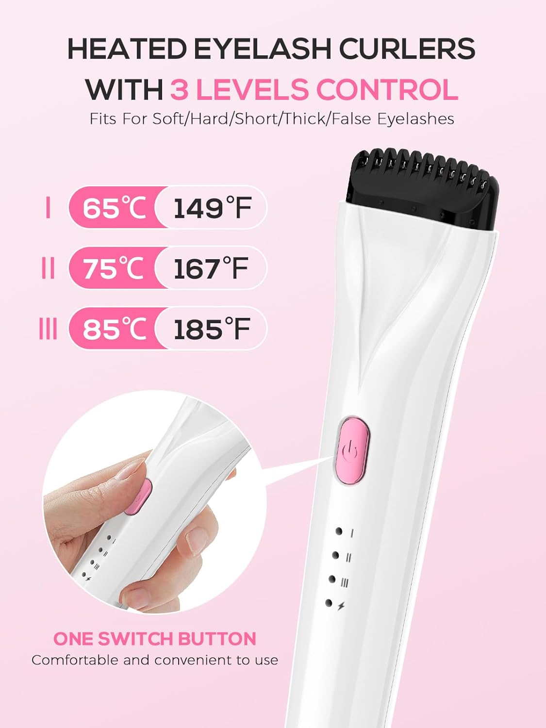 - 【Розширений нагрітий гоночний курлер ES-01 пропонує 3 варіанти температури. Постановка температури 65 ° C ідеально підходить для людей з чутливими війами або тих, хто віддає перевагу делікатному методу. Налаштування температури 75 ° C забезпечує баланс між ефективністю та безпекою. Підходить для більшості видів вій та забезпечує надійні зйомки. У випадку стійких або важких для освоєння вій, встановлення температури 85 ° С забезпечує додаткове тепло, яке необхідне для драматичної та тривалої атаки.