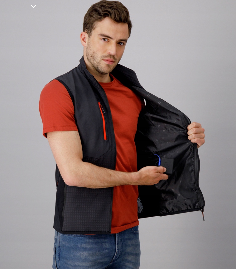 Unisex, оснащений передовою технологією, яка інтелектуально нагріває тіло на натисканні однієї кнопки. Він можна керувати за допомогою програми Clim8®, який доступний на пристроях Android та iPhone. Опалювальний жилет монітор у режимі реального часу температура шкіри, аналізує навколишнє середовище, профіль користувача та конкретні потреби в робочому середовищі. Таким чином, жилет нагріву автоматично активує тепло, коли температура комфорту зменшується і регулює температуру шкіри, коли користувач починається і закінчує діяльність штовхача. Нагріваючий жилет може використовуватися в середньому до 6 годин. Працює від 100 г літієвого акумулятора. Детальний посібник користувача знаходиться в доставці.