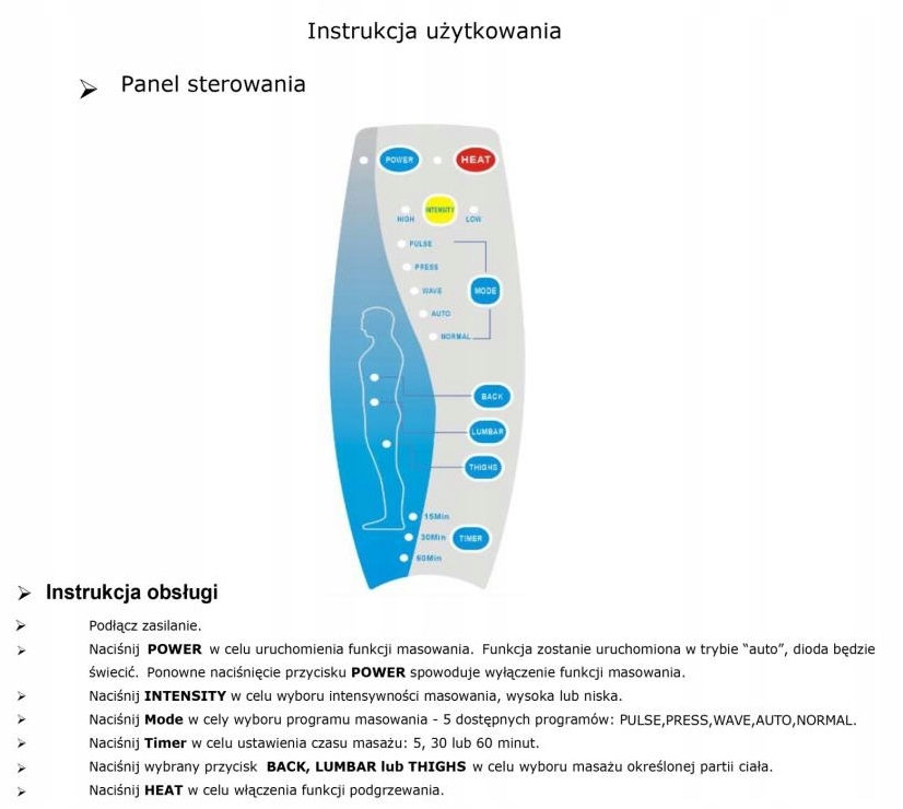 Крісло має 5 режимів масажу , 3 зон масажу, регульована інтенсивність масажу (2 градуси), таймер і функція нагріву .