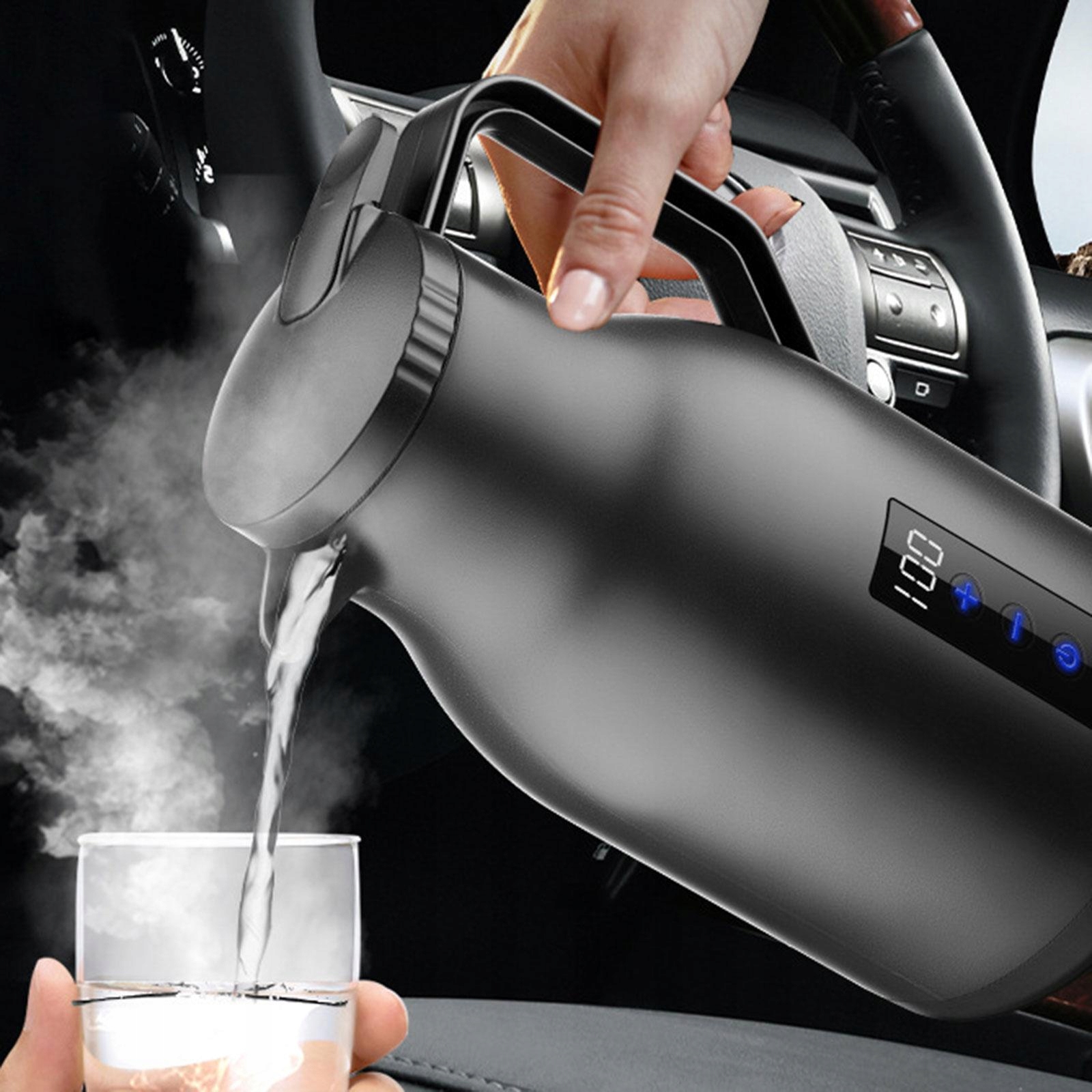 : Висока якість: нагрівальний чайник виготовлено з алюмінієвого корпусу чайника преміум-класу, стійкого до високих температур. Простий у використанні: автомобільний чайник простий у використанні, підходить для самостійного керування. Велика ємність: велика ємність 1000 мл, придатна для приготування чай , , локшина швидкого приготування в машині: автоматичне відключення живлення, кип’ятіння, більш надійний дисплей температури: сенсорне регулювання температури на екрані та зручне керування