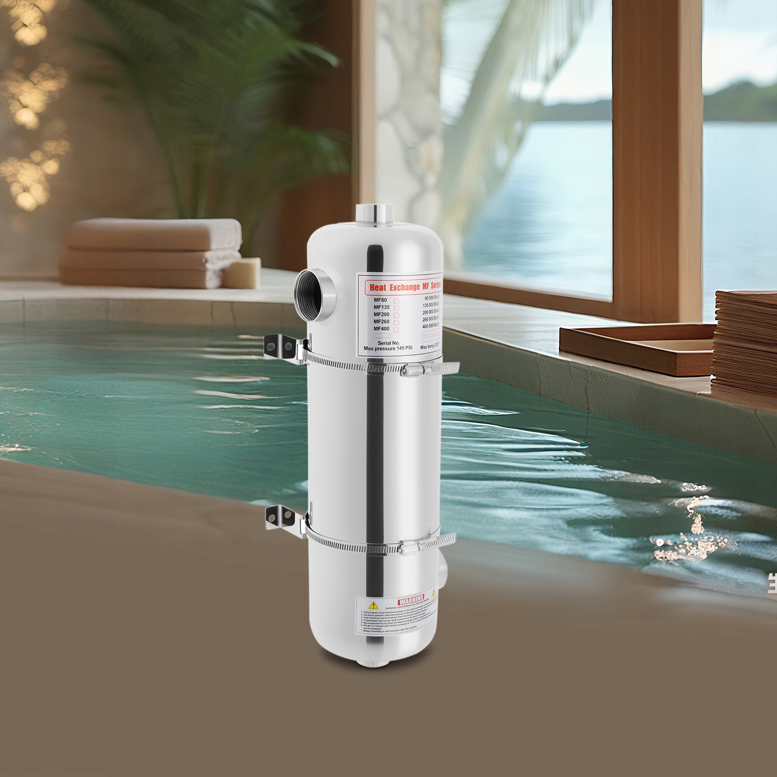 - Пориньте в мистецтво розкішного контролю температури води за допомогою цього теплообмінника для басейну, який, завдяки своїм вишуканим розмірам, розумно поєднується з будь-яким середовищем, не лише створюючи вираз смаку, але й забезпечуючи безпрецедентні враження з високою ефективністю 60 кВт. Унікальна конструкція перевернутого порту забезпечує оптимізовану динаміку потоку води, дозволяючи вам увімкнути обігрів або охолодження за бажанням, щоб зробити кожне плавання насолодою.