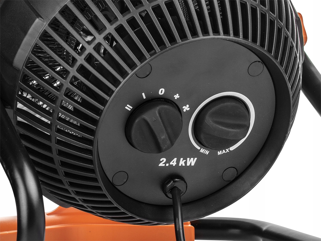 Продукт - це також нагрівач і вентилятор, 2 в 1. Пристрій також має функцію опалення та вентилятор з регулюванням. Нагріваючий елемент пристрою -це пружина, що швидко підтягується. Нагрівач має ізольовану пластикову ручку для легкої передачі. Корпус виготовлений з високотемпературного стійкого пластику, який запобігає опікам. Нагрівач характеризується високою продуктивністю з невеликим розміром. Характерні особливості: потужність 2400 Вт; Опалюючий елемент: пружина; Режим управління: посібник; Регульований термостат з перемикачем; Регульований кут випуску повітря до 90%; Захист від перегріву; міцна і міцна конструкція; утеплена, безпечна ручка; Режим нагріву: наполовину опалення / повне опалення; Режим вентилятора: низький вентилятор / високий вентилятор. Цей продукт підходить лише для спорадичного використання або для використання в добре ізольованих кімнатах.