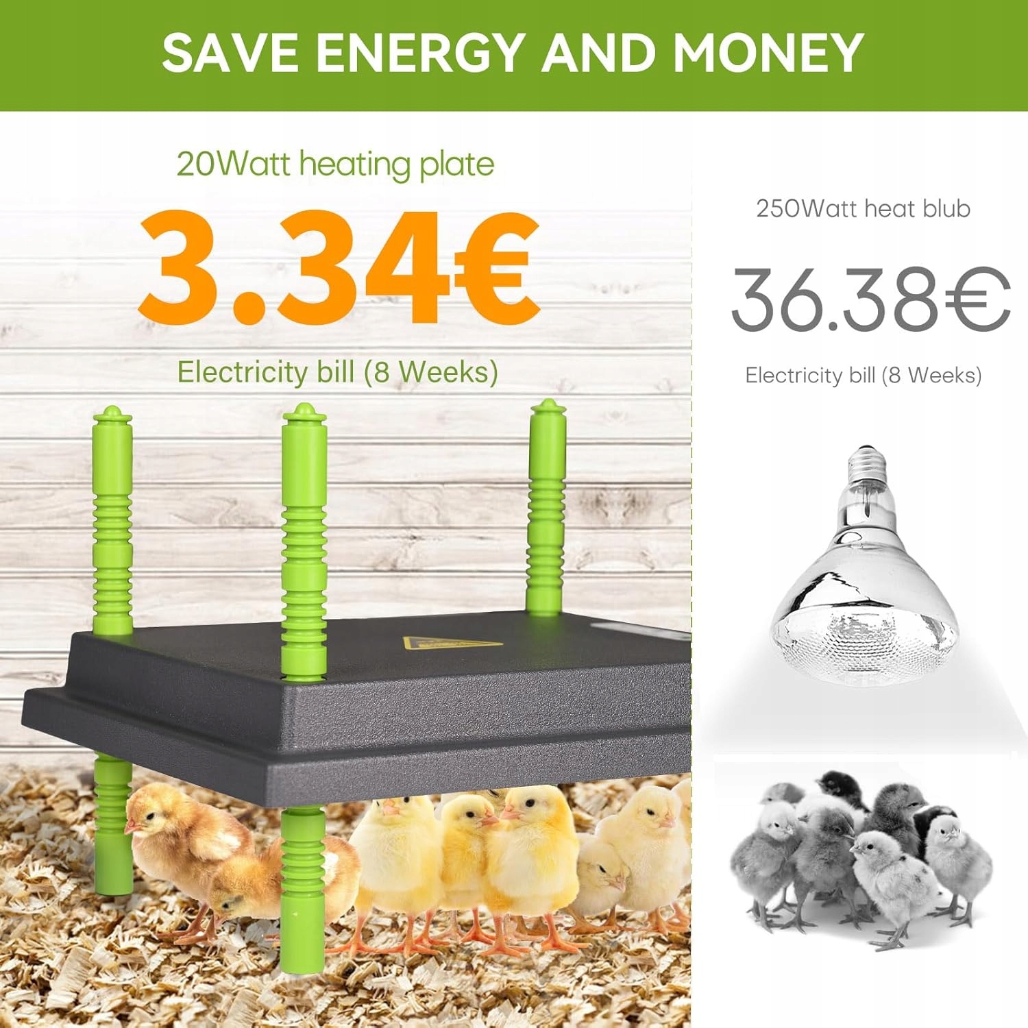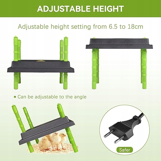 з 2 складними нагрівальними панелями, великим діапазоном нагріву: радіатор нагріву складається з 2 нагрівальними панелями, кут нахилу може бути відрегульований в діапазоні від 0 до 180 градусів. Чим більший кут, тим більша нагрівальна поверхня і тим більше курей можуть насолоджуватися легким нагріванням. Оснащений захистом від перегріву, радіатор нагрівача забезпечить безпеку ваших домашніх тварин або птиці. Побудований -in електричний захист: радіатор нагрівача виготовлений з міцного, жорсткого -опіального та ізольованого АБС із захистом від перегріву, він надійний і багаторазовий. Радіатор споживає 240 Вт електроенергії. Радіатор водонепроникний і немає ризику спалити. Поєднуючи переваги конвекції та теплового випромінювання, радіатор нагрівача забезпечує безпеку ваших домашніх тварин або запасів. Два варіанти складання: 22,5 x 11,2 дюйма радіатор для нагрівача Henmer, встановленого на стіні або стоячи (2 ноги та гвинти, необхідні для монтажу), радіатор пропонує неперевершену гнучкість. Підставка забезпечує стабільність радіатора на підлозі, а установка на стіні економить простір. 6,5 -дюймовий кабель (16,5 см) дозволяє комфортно зняти розетку навіть у випадку більшої конюшні. Підходить для багатьох застосувань: радіатор для стабільності забезпечує постійне, делікатне тепло, захищаючи тварин від обмороження. Радіатор для клітки підходить не тільки для Henhouse, але і ідеально підходить для підтримки тепла цуценят та кошенят. Він також підходить для інших застосувань, таких як собака -конюшня та зовнішня конюшня, що використовується в приміщенні, що ідеально підходить для холодних зим.