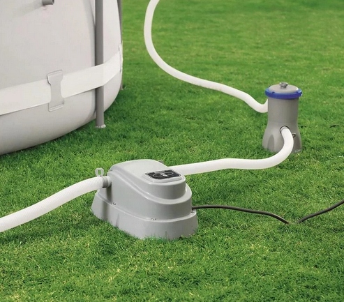 Якщо під час плавання у воді пальці ніг синіють, нагрівач для басейну Bestway® абсолютно необхідний. Нагрівач для басейну простий і ефективний спосіб підігріти воду в надземному басейні, створюючи комфортне і розслаблююче середовище для плавання або ігор. Електричний нагрівач для басейну має два виходи шланга, один з яких з’єднує його з фільтруючим насосом, а інший – із наземним басейном. Чиста та незаймана вода подається до наземного нагрівача для басейну через фільтруючий насос. , де потім нагрівається та закачується назад у басейн. Система підігріву басейну сумісна з фільтруючими насосами та піщаними фільтрами з продуктивністю 3785 літрів (1000 гал.) або менше. Нагрівач для басейну з цифровим керуванням із сенсорною панеллю керування має максимальну вихідну температуру 40 ° C(104 ° F). Це один із багатьох продуктів із колекції аксесуарів для басейнів Bestway®, призначених для підвищення комфорту використання наземного басейну.