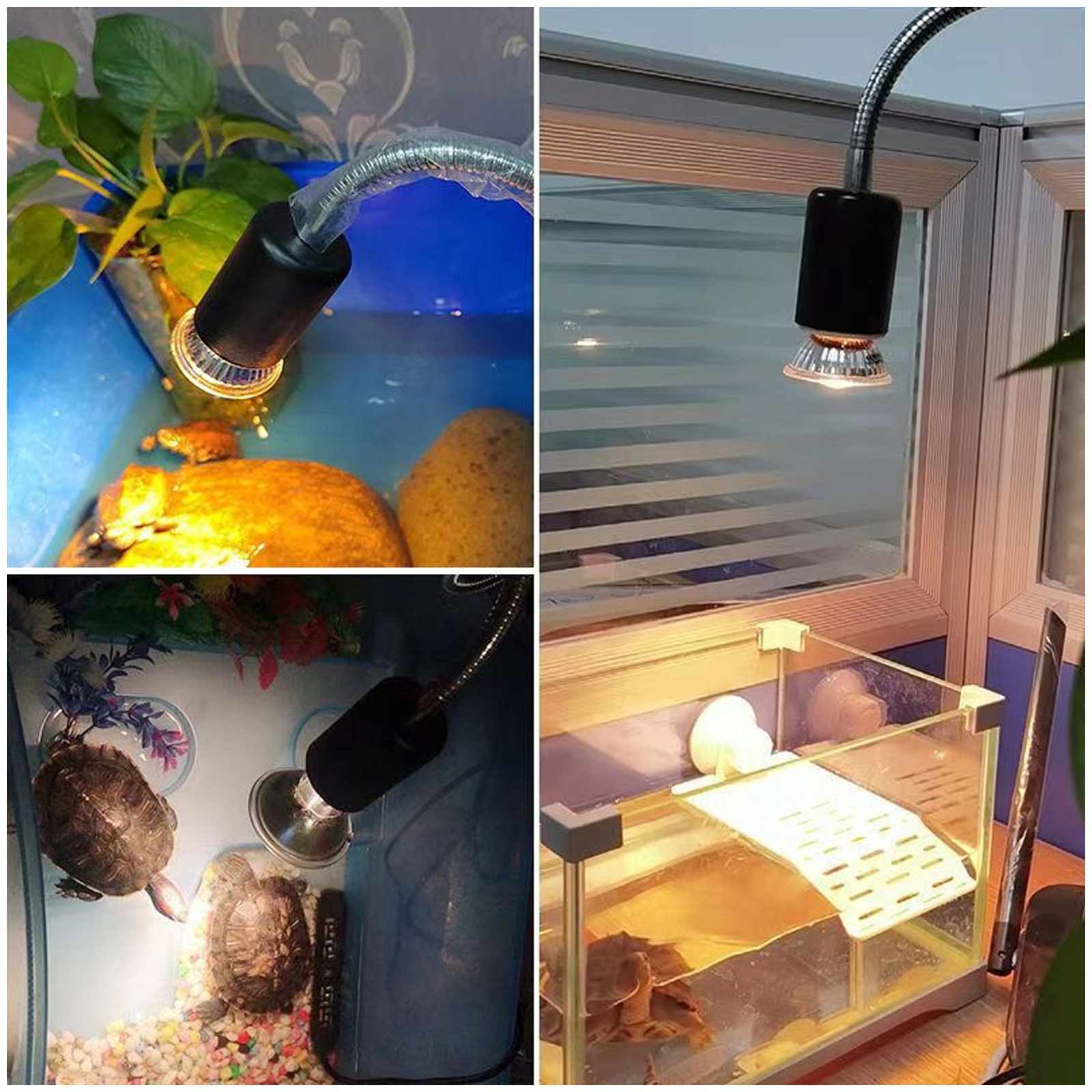 E27 reptile lamp holder for turtle, 360 ° adjustment, E27 clamping lamp frame with switch and 1.2 m cable and the EU plug h1>