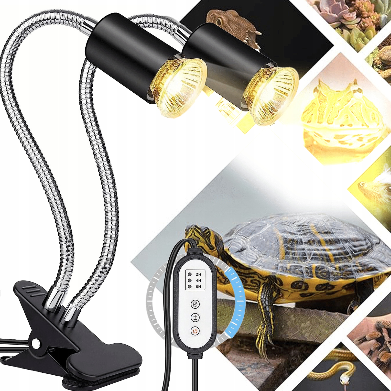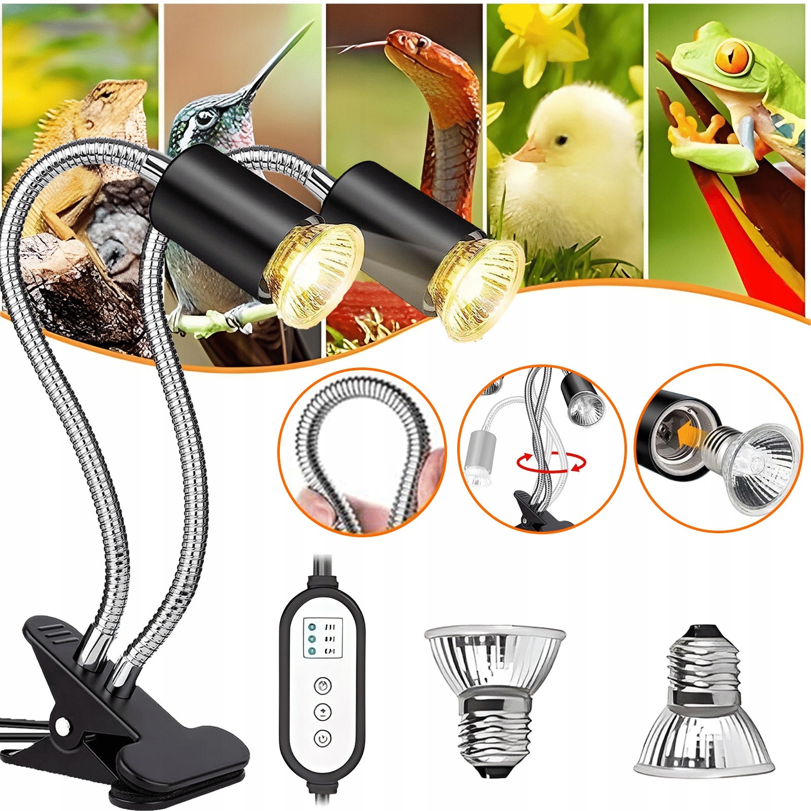 �【2 ЛАМПИ ДЛЯ РЕПТИЛІЙ】Двоголова лампа для рептилій має антиокислювальні та вибухозахисні властивості. Включає одну точкову лампочку 25 Вт і одну точкову лампочку 50 Вт. Імітує сонячне світло та забезпечує відповідне ультрафіолетове випромінювання та температуру для задоволення потреб рептилій у їхньому природному середовищі вирощування. Двоголова лампа для рептилій має антиокислювальні та вибухозахисні властивості. Включає одну точкову лампочку 25 Вт і одну точкову лампочку 50 Вт. Імітує сонячне світло та забезпечує відповідне УФ-випромінювання та температуру для задоволення потреб рептилій у їхньому природному середовищі вирощування.