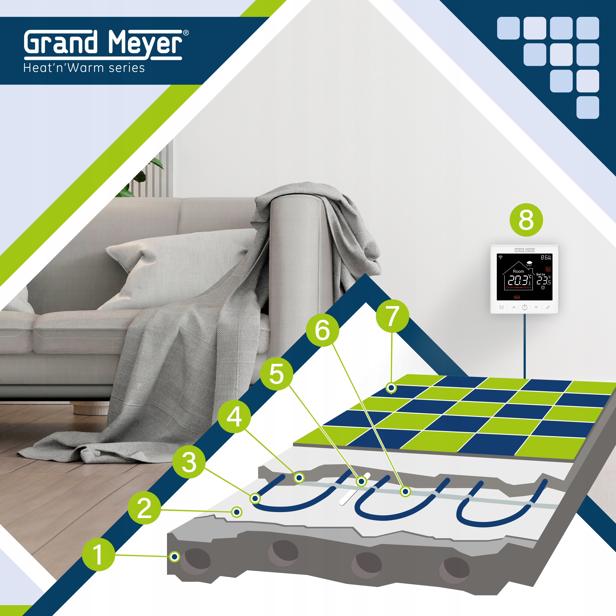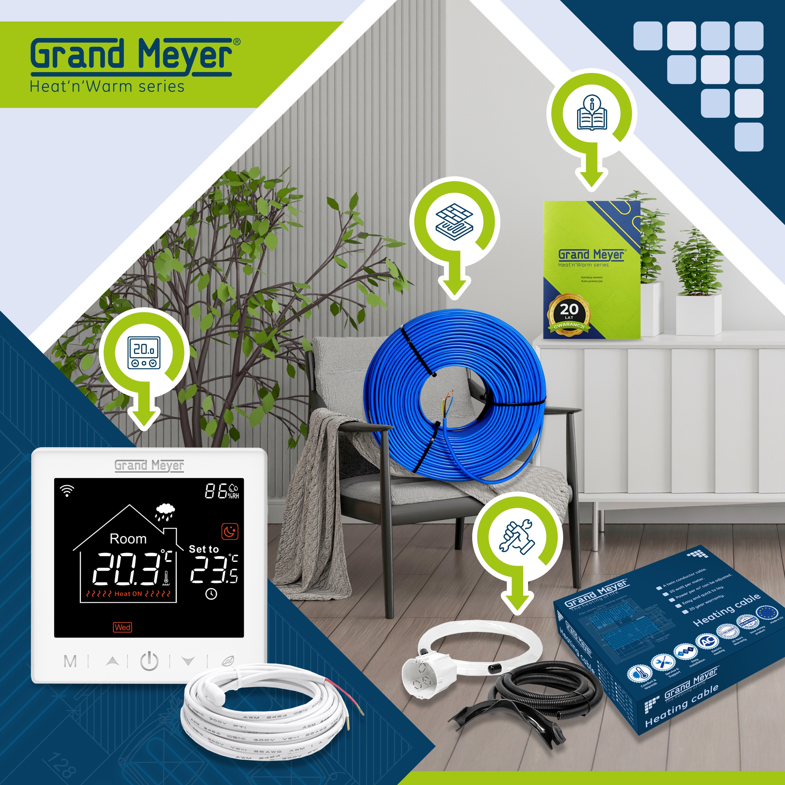З системою Grand Meyer THC20 ви отримуєте комфортну, надійну та економічну теплу підлогу, яка забезпечує приємне тепло щодня - без складного встановлення та обслуговування.
