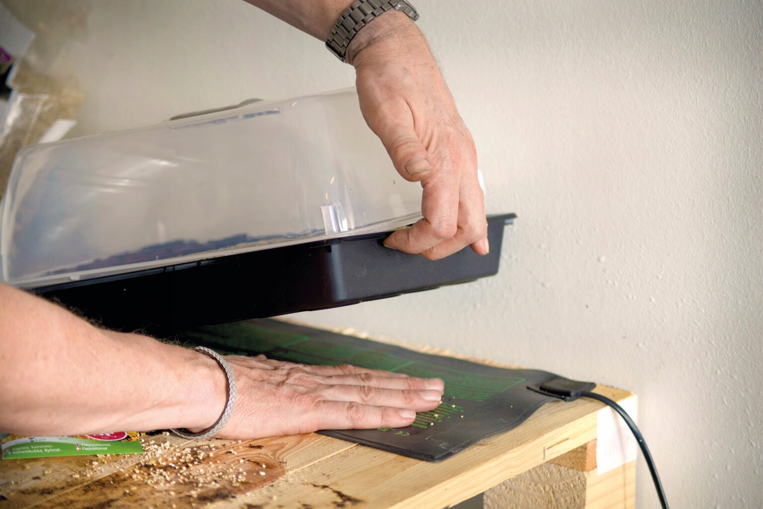 З’єднайте килимок і поставте на нього свою міні-теплицю, піднос або квітковий горщик, доки насіння не почне проростати, виросте на 2-3 см і матиме розвинене листя належним чином.