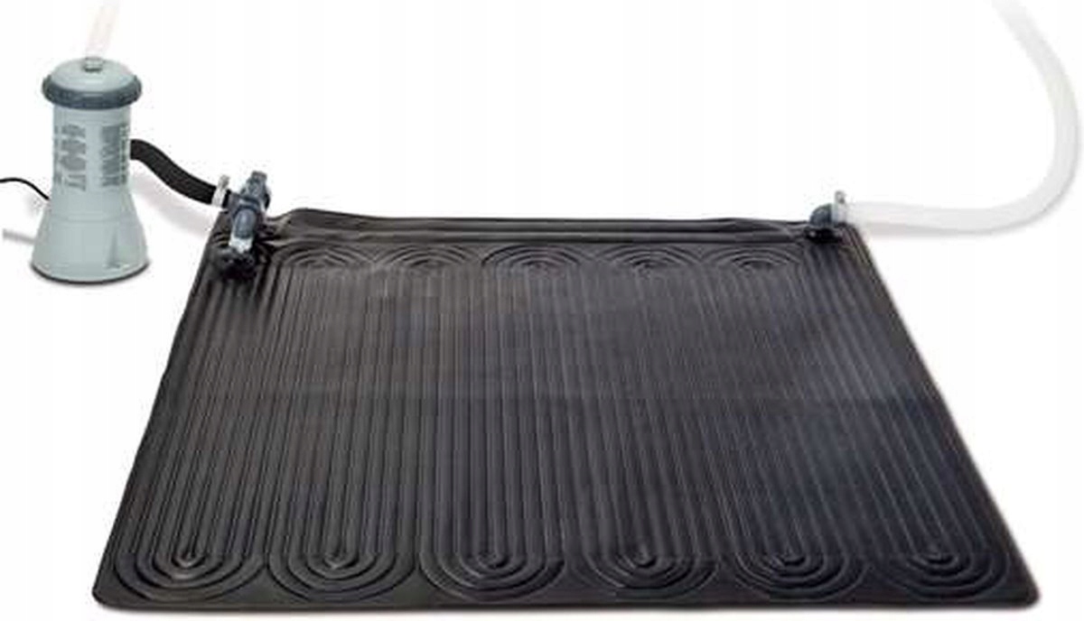 Сонячний килимок Intex, який дозволяє підвищити температуру води в басейні до 5 градусів. Секологічно для природи. Панель використовує сонячну енергію - просто покладіть килимок на рівну поверхню та підключіть панель до контуру водяного насоса або піщаного фільтра (насос не входить в комплект) Сонячні промені нагрівають вода, що протікає через панель. Нагріта вода повертається в басейн.